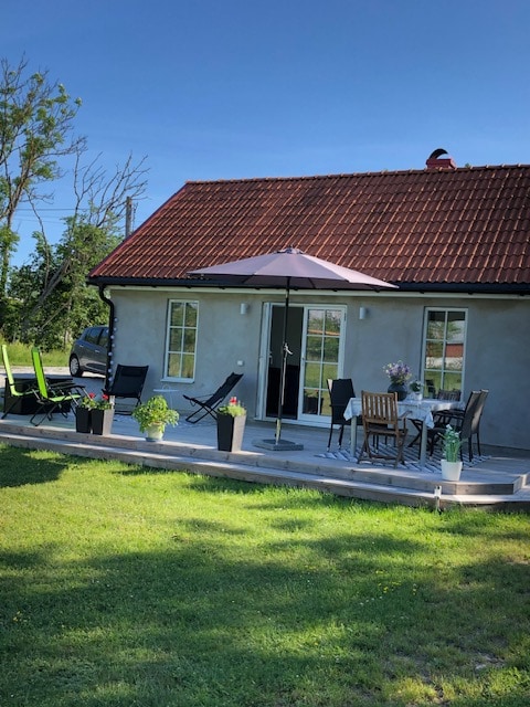 Welcome to our wonderful house in the best location at Gotland! We are a family letting our house, Gnisvärd/Tofta. 18 km south of Visby, 200 m to the popular Tofta Strand. 800 m Gnisvärd fishing village. 3 bedrooms, livingroom, kitchen, ca 90 kvm, a guesthouse (4 single beds). Dishwasher, laundry, and wifi, fireplace. Large garden incl. forest 2500 sqm., We are also renting out a smaller house of 30 sqm. A fence separating the houses. You only share the parking.