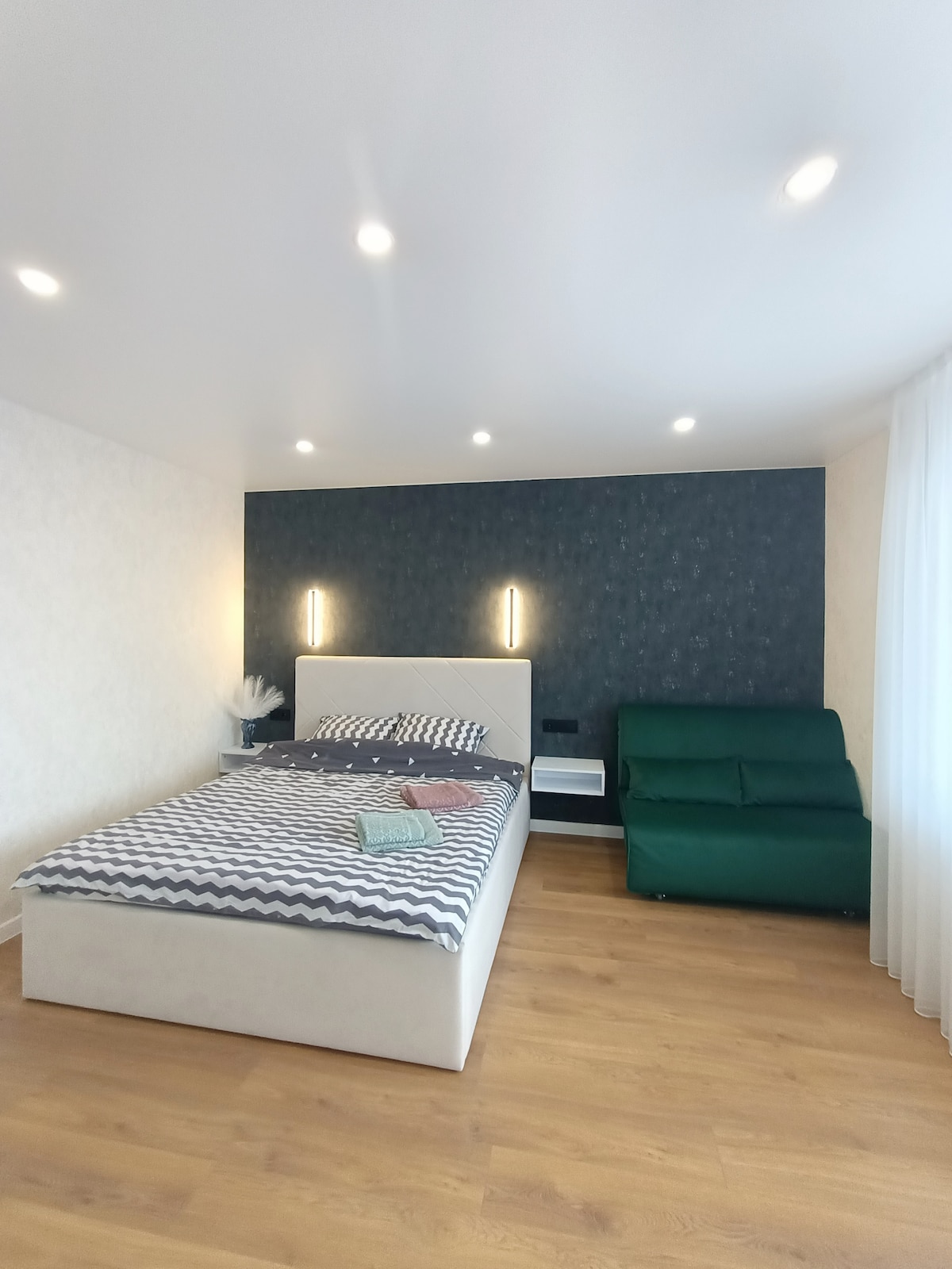 Modern and comfortable apartment in a quiet area of Vinnitsa. 10 minutes to the city center, 5 minutes walk to traffic intersections, 5 minutes walk to fores, stadium, walking avenue, 2 shopping malls in walking distance. The apartment is fully equipped with all necessary furniture and appliances. It is very cozy and I will be more than happy to welcome you here! I am here to assist you 24/7, your comfort and safety is my priority!