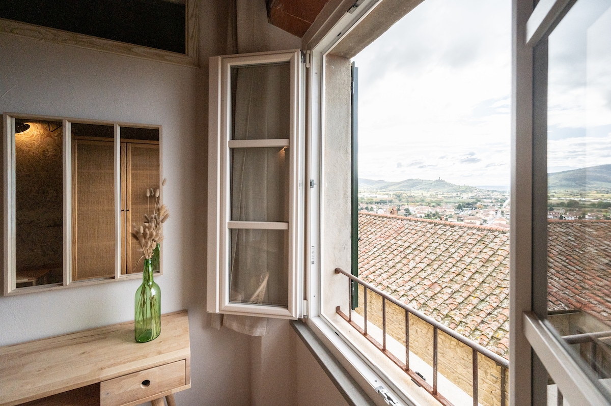 Maliwanag, kaaya - aya at komportableng apartment na matatagpuan mismo sa gitna ng makasaysayang sentro ng Cortona na may hindi malilimutang tanawin: ang munisipal na gusali sa isang tabi at ang Lake Trasimeno at Valdichiana sa kabilang panig. Kamakailang na - renovate ang apartment at binubuo ito ng sala na may sofa bed, maliit na kusina, double bedroom, at dalawang banyo. Sa apartment ay may WiFi, heating at air conditioning, washing machine, oven, microwave, hair dryer at hot plate.