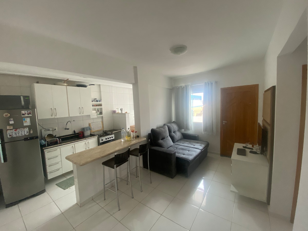 Maganda at komportableng apartment sa distrito ng Boa Vista de Vitória da Conquista, na matatagpuan nang maayos,malapit sa dalawang mall ng lungsod. Bago at kumpletong apartment,handa nang tanggapin ka! Kumpletong kusina na may de - kuryenteng oven,microwave, blender, airfryer at mga pangunahing pang - araw - araw na kagamitan. Mga komportableng kuwarto na may komportableng higaan. Labahan gamit ang washing machine at plantsa. Isang magandang sala na may komportableng sofa, smart TV at Wi - Fi. Matatagpuan sa ikalawang palapag na may hagdan.