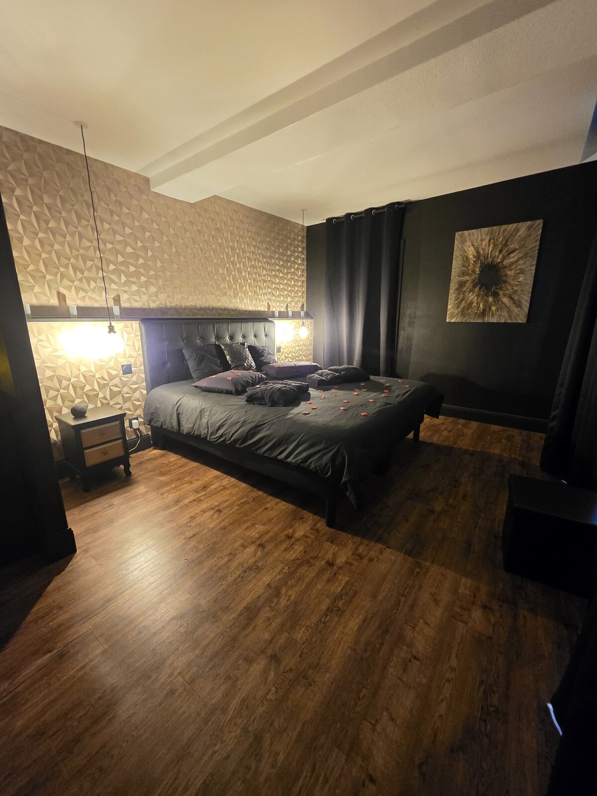 Magandang lokasyon sa gitna ng lungsod, malapit sa lahat ng tindahan. Magkakaroon ka ng pribadong paradahan, pati na rin ng hiwalay, independyente at maingat na pasukan sa unang palapag. Paglalarawan ng apartment Magagamit ng mga bisita ang 65 m2 na tuluyan Romantikong kuwarto - Laki ng bit King - 2-taong whirlpool tub - Sauna para sa 2 tao - Video projector, Wi‑Fi (Netflix, Amazon, atbp.) - Tantra armchair 1 silid - tulugan - Queen size na higaan Double XXL shower