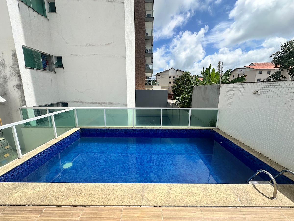 Apartamento duplex mobiliado, duas suítes com ar condicionado e uma varanda no pavimento superior. Pavimento térreo: sala, cozinha, lavabo, área privada com churrasqueira e chuveirão. Possui uma vaga de garagem. Tem wi-fi e localiza-se a 100 metros da praia dos milionários (melhor praia do litoral sul de Ilhéus).