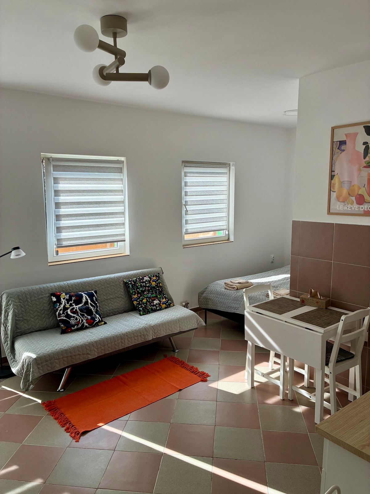 Ang aming lugar ay napaka komportable, modernong furnished, inayos na apartment. Ito ay binubuo ng isang mas malaking kuwarto, isang gumaganang kusina, isang modernong banyo at isang maluwang na terrace na may magandang tanawin ng tahimik na kapaligiran. Matatagpuan ito sa mas malawak na sentro ng Novi Sad, sa layo na humigit - kumulang 15 -20 minuto ng madaling paglalakad mula sa halos lahat ng tanawin sa lungsod.