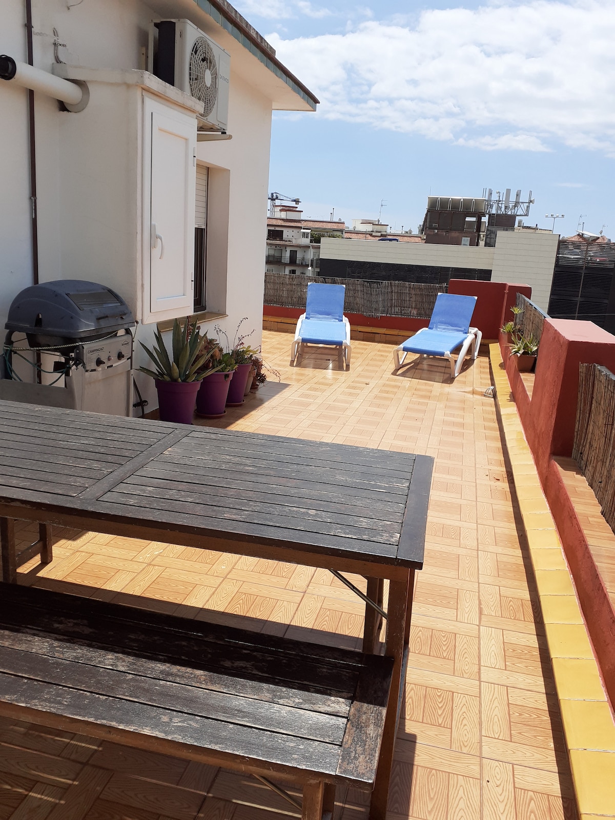 Maaliwalas na penthouse na may dalawang terrace, isa na may tanawin ng dagat at isang pribadong solarium. Maliwanag at tahimik na kapaligiran—perpekto para sa magkarelasyon. Lokasyon: 50 metro lang ang layo sa Sant Sebastià Beach at 5 minutong lakad ang layo sa istasyon ng tren, mga bar, restawran, supermarket, at café ☕. Wi‑Fi · TV · Air conditioning · Microwave · Kusina, Refrigerator · Dishwasher · Washing machine ⚠️Bilang bahagi ng mga lokal na rekisito, hinihiling namin sa mga bisita na magbahagi ng pangunahing impormasyon para sa pagpaparehistro sa mga awtoridad. HUTB-134811