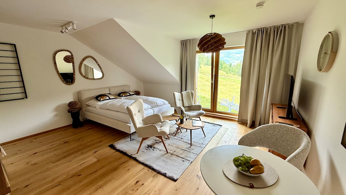 BOOK 7 NIGHTS and PAY ONLY for 6 - 15% discount for whole week stays Panorama Lofts Pec offers stunning mountain views thanks to huge format glass walls that make you feel part of the surrounding. This new building is one of the architectural highlights of the town. It is perfectly located between the center and the major ski slopes. Both within close walking distance. Hit the slopes directly on skis or one stop by skibus that stops right behind the house.The town center it is just 5 min. walk