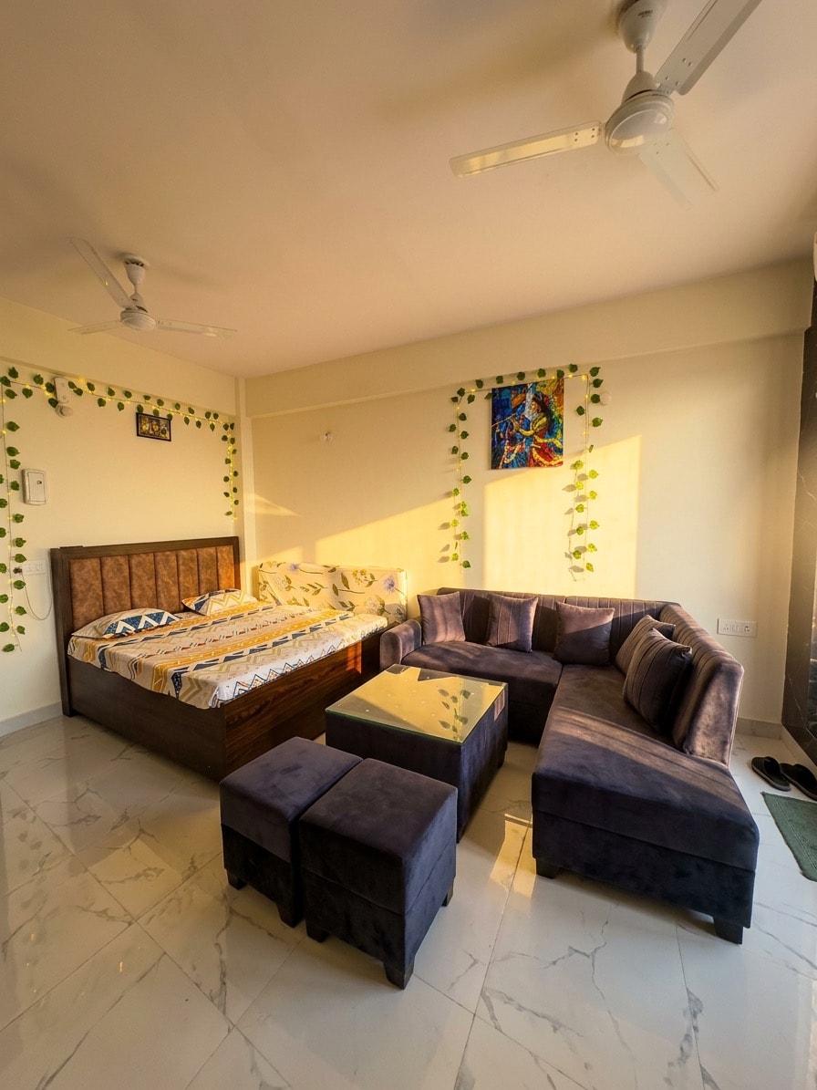Mga Nakakatawang Kuwento: Boutique na Tuluyan sa Vrindavan ​Makaranas ng "feel-good vibes" sa Laugh Tales, isang studio na may espesyal na disenyo na nasa ika-4 na palapag ng isang premium na township. Pinagsasama‑sama ng tuluyan namin ang diwa ng nomadismo at espirituwalidad para maging tahimik na santuwaryo na may magagandang tanawin ng paglubog ng araw at luntiang kapaligiran. ​Mga Highlight- ​Pangunahing Lokasyon: Matatagpuan malapit sa ISKCON, Prem Mandir, at Banke Bihari Ji, Keli Kunj (tahanan ni Premanand Ji Maharaj) na malapit sa mga lokal na pamilihan at may sapat na paradahan.