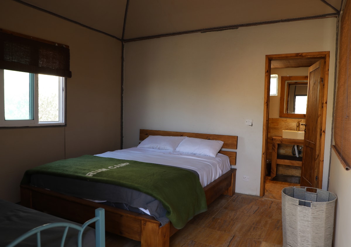 Our Deluxe Family Tent is perfect for families seeking comfort and space in the heart of Wadi Rum. The tent features two connected sleeping areas with two private bathrooms, offering privacy and convenience for parents and children. Enjoy a stunning mountain view, unforgettable stargazing nights, and a magical private terrace where you can relax and experience the true beauty of the desert. A unique family experience combining nature, comfort, and authentic desert charm.