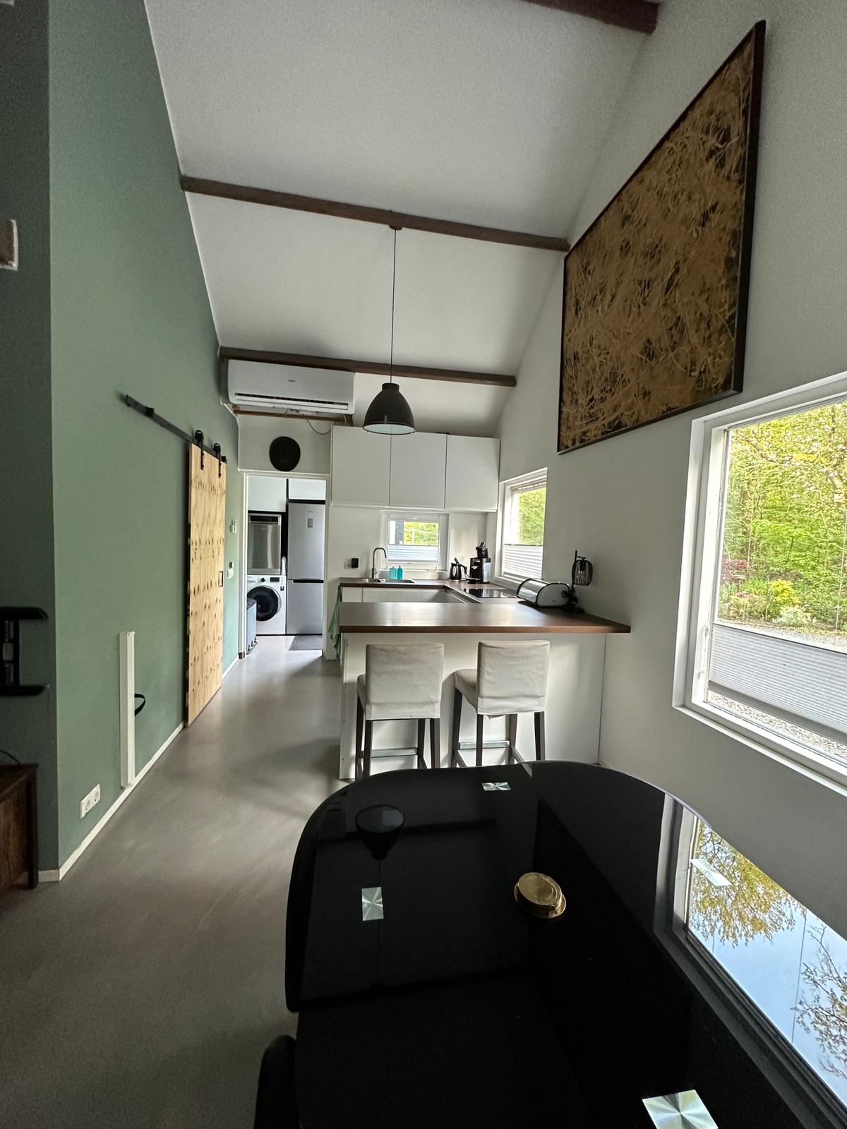 Isang natatanging log cabin na may modernong interior at mga salaming double door na nakatanaw sa bakuran at upuan. Mahusay na dinisenyo na interior na may lahat ng mga mahahalagang bagay at marami sa mga hindi kinakailangan kabilang ang isang modernong kusina at banyo. Ipinagmamalaki naming mabigyan ang aming mga bisita ng pinakamahusay na makatarungang kape na naranasan nila. Gagawin ng Siemens EQ6 ang lahat ng Espresso, Cappuccino at Latte Macchiato na gusto mo. May gitnang kinalalagyan sa Netherlands: 20 min na bus papuntang Utrecht. Wala pang 45 minuto ang layo ng kotse mula sa Amsterdam.