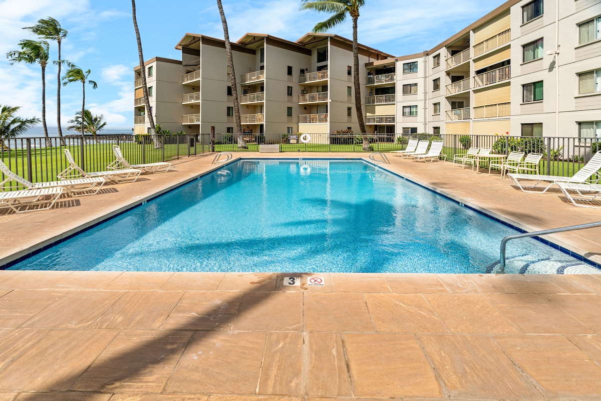 Maglaan ng ilang sandali para magpahinga at pahalagahan ang mga nakamamanghang tanawin mula sa patyo, kung saan makikita mo ang mga balyena mula Nob - Abril at masulyapan ang mga surfer na nakasakay sa "Freight Train" sa kalagitnaan ng tag - init. Makipagsapalaran para sa isang nakakalibang na lakad papunta sa Maalaea Harbor Shops at sa Maui Ocean Center, o tuklasin ang biyahe papunta sa Lahaina (West), Hana (East), o Wailea (South tip). Tangkilikin ang mga kaaya - ayang amenidad kabilang ang Heated Pool, Oceanfront BBQ station, at Lounge area sa damuhan. Itinalagang paradahan sa mismong harapan.