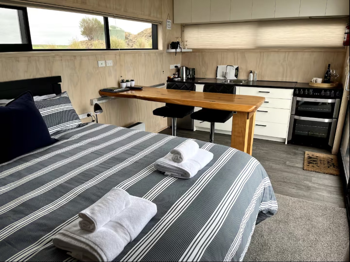 Dahil sa pinag - isipan at modernong disenyo, natatanging karanasan ang Kingfisher Cabin. Gumawa kami ng pribado at marangyang maliit na tuluyan na nagbibigay sa iyo ng lugar na kailangan mo para komportableng maalis ang iyong sarili sa pagmamadali ng pang - araw - araw na buhay. Matatagpuan ang Kingfisher Cabin 10 minuto lang mula sa Timaru at dalawang oras mula sa Christchurch at Dunedin. Matatagpuan ang cabin sa bukid na may kamangha - manghang tanawin ng karagatan. Ang bagong built cabin ay may magandang estilo, na may nakakapagpahinga at nakakapagpakalma na vibe.