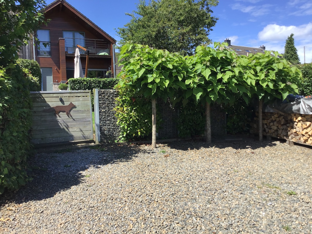 Ce logement en bois est idéalement situé sur la colline et offre une vue magnifique sur la vallée. Le logement comprend 2 chambres cosy, une salle de bain, une cuisine équipée, un salon, salle à manger, terrasse et jardin fermé. Situé dans un cadre calme, il sera un point de départ privilégié pour les balades à pied ou à VTT au bord des ruisseaux . A deux pas des grottes de Remouchamp, du « monde sauvage », du village d’Aywaille . De Theux. A une heure de Eiffel.