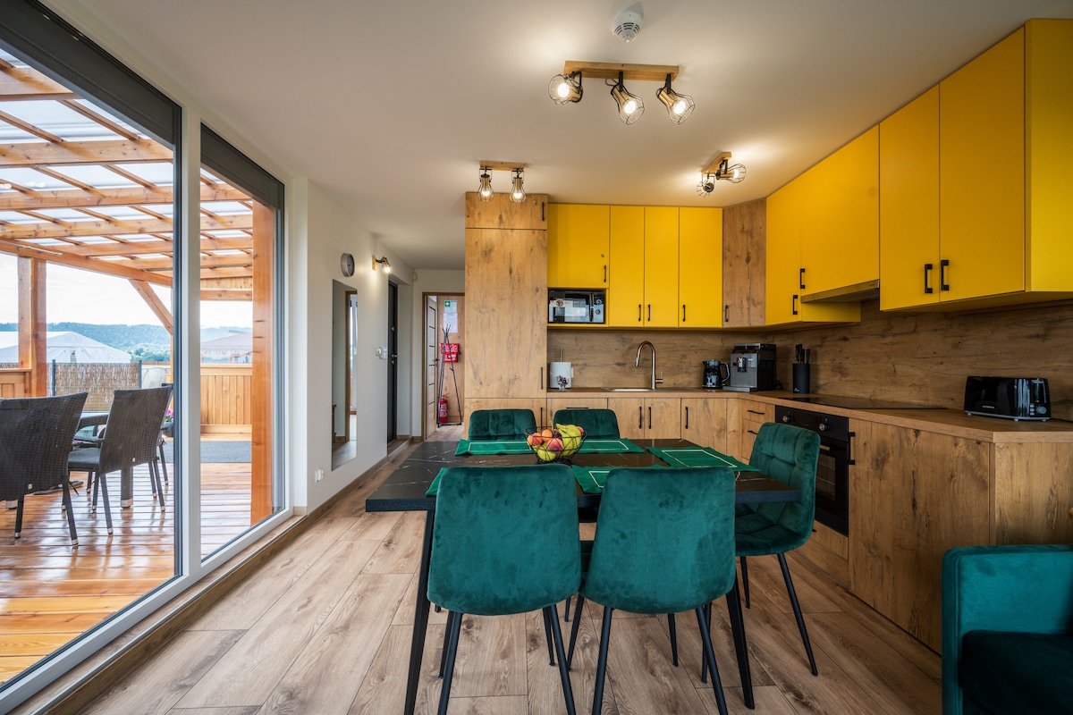 Wypoczniesz w ciszy, wśród codziennego śpiewu ptaków, spacerów po trawie z kubkiem kawy, długich wędrówek po górach lub na słodkim leżakowaniu na naszych tarasach. Zapraszamy Cię w inny wymiar relaksu – w naszych domkach i otoczeniu znajdziesz odpoczynek od ludzi i tłumów, poprawisz relacje sam ze sobą. Połączysz się na nowo z tym, czego szukasz, z potrzebami, marzeniami, oczekiwaniami. Dostarczymy Ci odpoczynku, takiego, jakiego dawno nie zaznałeś. W cenie pobytu masz dostęp do gorącej balii.