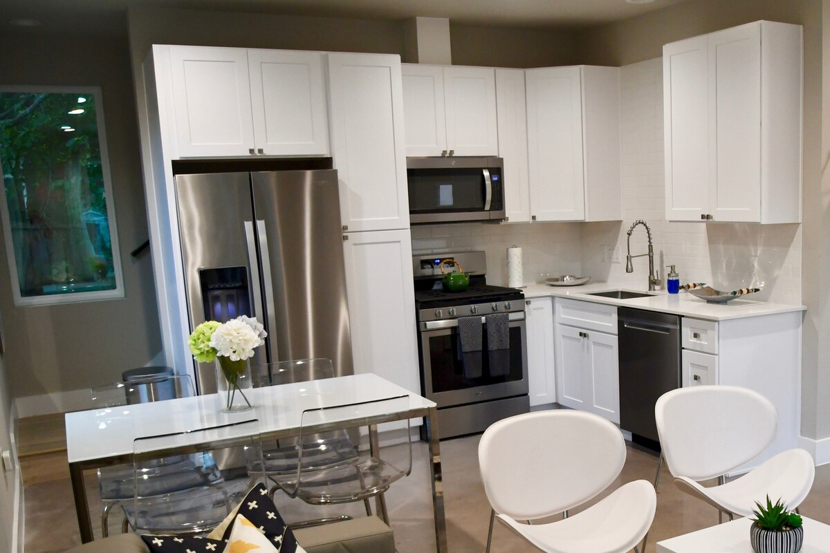 Ito ay isang naka - istilong, komportable at maginhawang guesthouse para sa paggastos ng isang masaya na bakasyon sa East Austin. Ang aming casita ay maaaring lakarin sa marami sa mga pinakasikat na lugar sa Austin, kabilang ang Moody Center: pinakamalaking lugar ng musika sa Austin. Itinayo noong 2020, nagtatampok ang aming guesthouse ng lofted queen - sized bed, couch na may pull - out twin mattress, eleganteng walk - in shower, smart TV, at maliliit na kasangkapan kabilang ang refrigerator - freezer, microwave, at Nespresso coffee maker. Magrelaks sa estilo habang ginagalugad mo ang aming masayang lungsod!