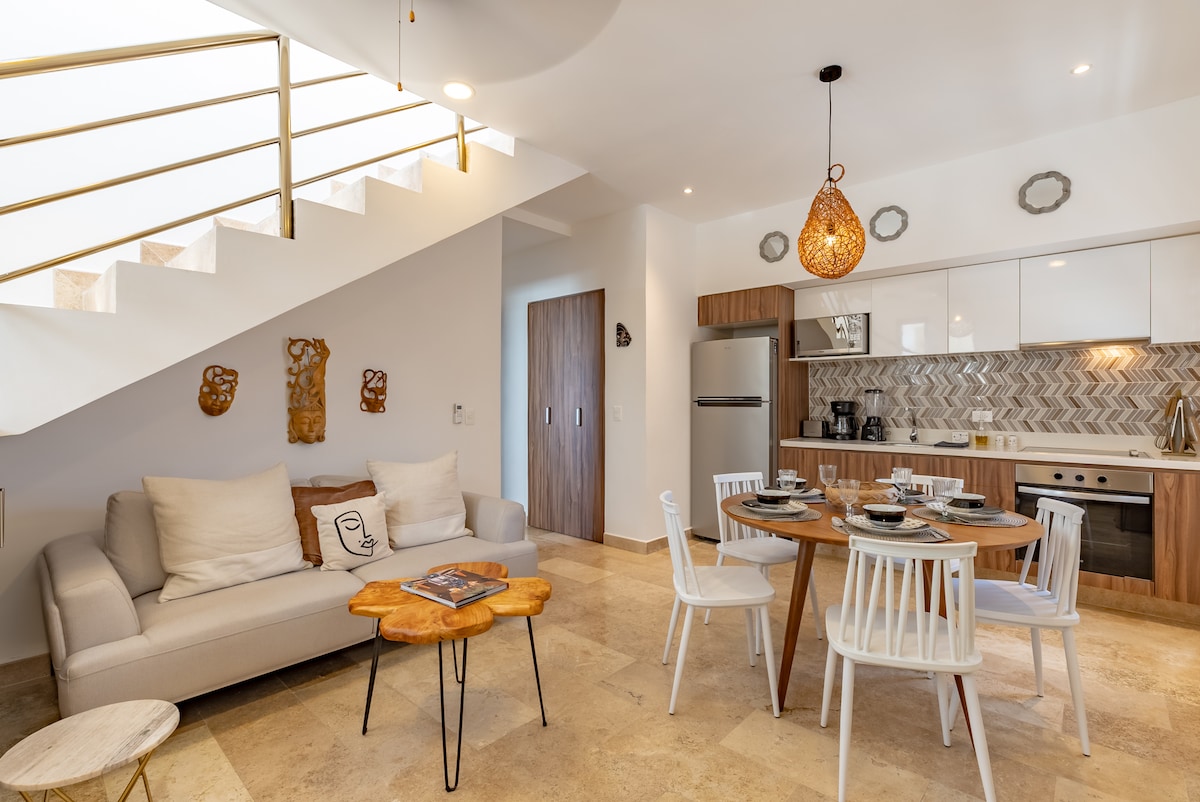 Pinakamagandang Lokasyon! Ilang Hakbang Lang Papunta sa 5th Ave at Beach + Rooftop Pool 1 minuto lang ang layo sa 5th Avenue at 2 block ang layo sa beach kapag naglalakad. Tahimik, maestilo, at kumpleto ang kagamitan—perpekto para sa mga bakasyon o pagtatrabaho nang malayuan sa Caribbean. Mag-enjoy sa rooftop pool, maglakad papunta sa mga restawran, cafe, at nightlife, magrelaks sa beach gamit ang kasamang kagamitan (mga upuan, portable cooler, sunshade), o tuklasin ang nakakamanghang likas na ganda ng Riviera Maya. Narito ang lahat ng kailangan mo para sa perpektong pamamalagi sa Playa del Carmen!
