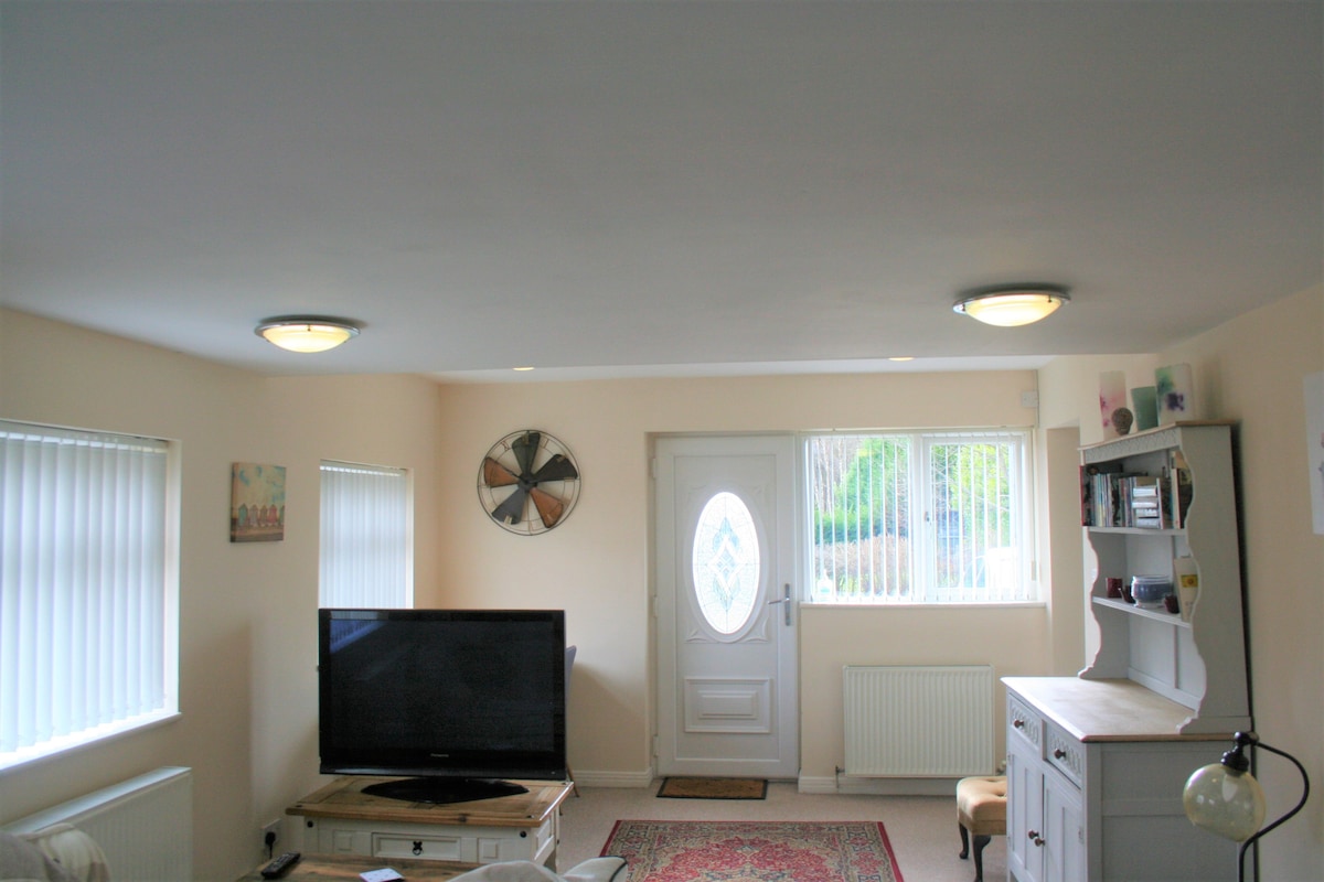 Self Contained isang silid - tulugan na flat. Madaling mapupuntahan ang Lichfield, Cannock Chase, Birmingham, at Toll Road. Ang accomodation ay nilagyan ng mataas na pamantayan. Maluwag na open plan living room at kusina na may washer, tumble dryer. refrigerator freezer, counter top double electric hob, convection microwave, halogen oven, health grill/panini maker, electric fry pan, omlette maker, air fryer at wide screen TV. Maluwag na double bedroom na may ensuite bathroom.