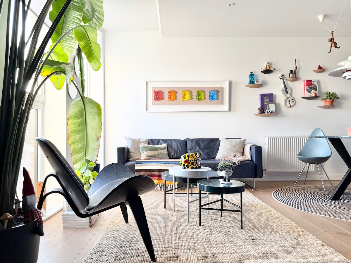 Tumuklas ng mapayapang oasis sa gitna ng London! Ipinagmamalaki ng natatanging dinisenyo na apartment na ito ang walang hanggang dekorasyon na may mga piraso mula sa iba 't ibang panig ng mundo at mga nakamamanghang tanawin ng Canary Wharf. May perpektong lokasyon sa sentro ng London, konektado ito nang mabuti sa pamamagitan ng pampublikong transportasyon at sa loob ng 20 minutong biyahe sa bisikleta papunta sa karamihan ng Zone 1. Sa kabila ng gitnang lokasyon nito, nag - aalok ang flat ng tahimik at nakakarelaks na kapaligiran, isang tahimik na bakasyunan sa mataong lungsod. Ito rin ay lubos na karapat - dapat sa social media, na ginagawang perpekto ang bawat sandali!