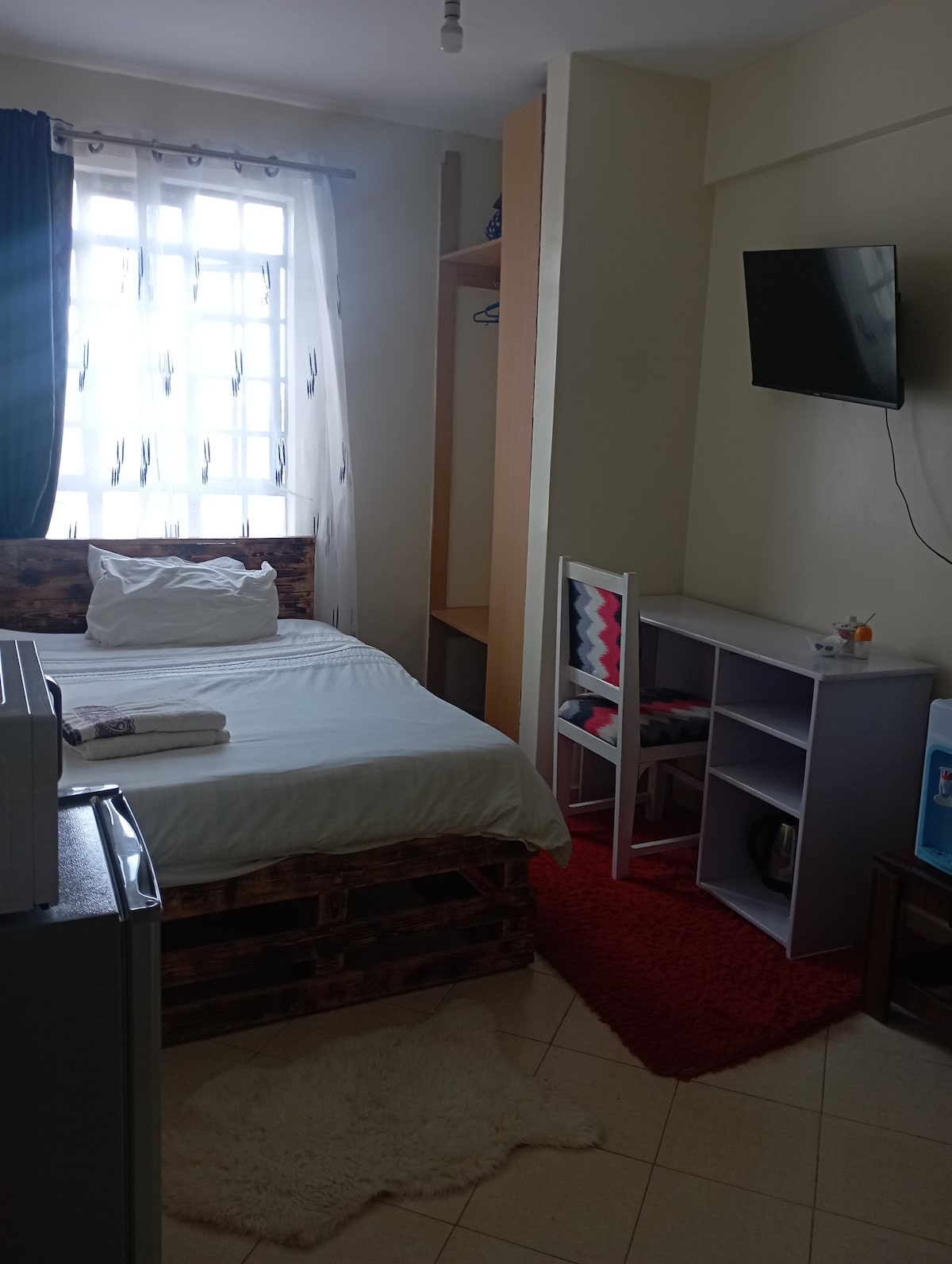 Ang Zawadi ay isang eleganteng malinis na studio na matatagpuan sa mas mababang kabete na may madaling access sa mga kalsada, supermarket. Ang studio ay may isang napaka - maaliwalas na queen bed, magandang espasyo sa banyo na may mainit na shower at isang maliit na kitchenette. Ito ay homely crafted na may tubig 24/7,mahusay na seguridad,smart Tv ,mabilis na safaricom internet at libreng paradahan sa lugar. Sa Zawadi, madaling maa - access ng isa ang mga lugar tulad ng KSG, westlands,Kitisuru...Isang karangalan na i - host ka!!