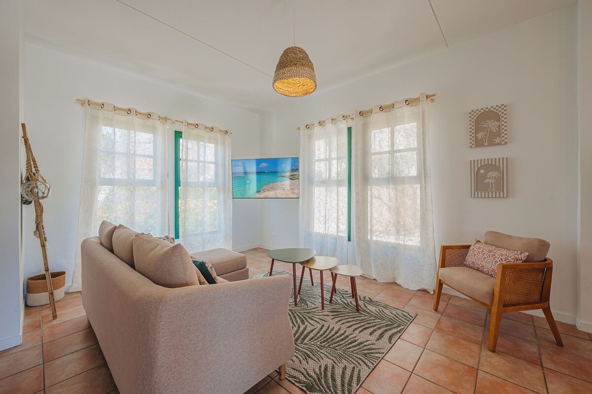 Nakatago sa payapang lugar ng Alto Vista, ang modernong villa na ito ang perpektong kanlungan para sa mga pamilya o magkakaibigan na gustong magrelaks nang komportable at sunod sa uso. May malalawak na interior, pribadong pool, at lahat ng kailangan mo para sa walang inaalalang pamamalagi, kaya perpektong tuluyan ito para magpahinga pagkatapos maglibot sa Aruba. ✔ Pribadong Pool at Oasis sa Likod-bahay Kusina ng Chef ✔ na Kumpleto ang Kagamitan ✔ 3 Kuwartong may King Bed + 4 na Banyo ✔ Mga Smart TV at High‑Speed Wi‑Fi (92 Mbps) ✔ May Kasamang Mga Upuan sa Beach, Cooler, at Mga Pangunahing Kailangan
