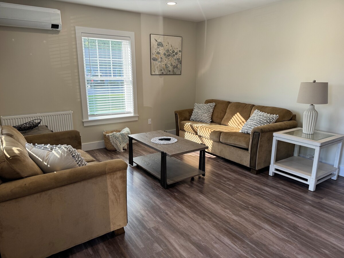 Ito ay isang maluwag na 1000 sq. ft. apartment sa aking bahay ng pagkabata na na - renovate sa Spring 2020 na may modernong tema sa baybayin at mahusay na hinirang na may mga vintage item. Mayroon kaming maayos na kusina, maaliwalas na kainan/sala na may 43" Roku TV, at buong labahan. Subukan ang isang pastry mula sa propesyonal na panadero sa kabila ng kalsada, maglakad sa kalye papunta sa Crockett 's Beach, o maglakad - lakad sa downtown Rockland. Available ang remote na pag - check in.