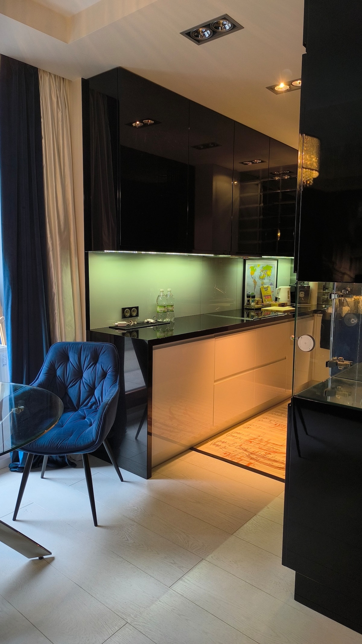 Apartment, 21m2, studio type which is located on the 15th floor of a building with security. The placement of the study will for sure add uniqueness to the stay. Panoramic windows allow you to admire the panorama of the city center of Warsaw. We offer self check-in and check-out, through key locker / padlock. The apartment is fully equipped with all necessary things that are needed to live.