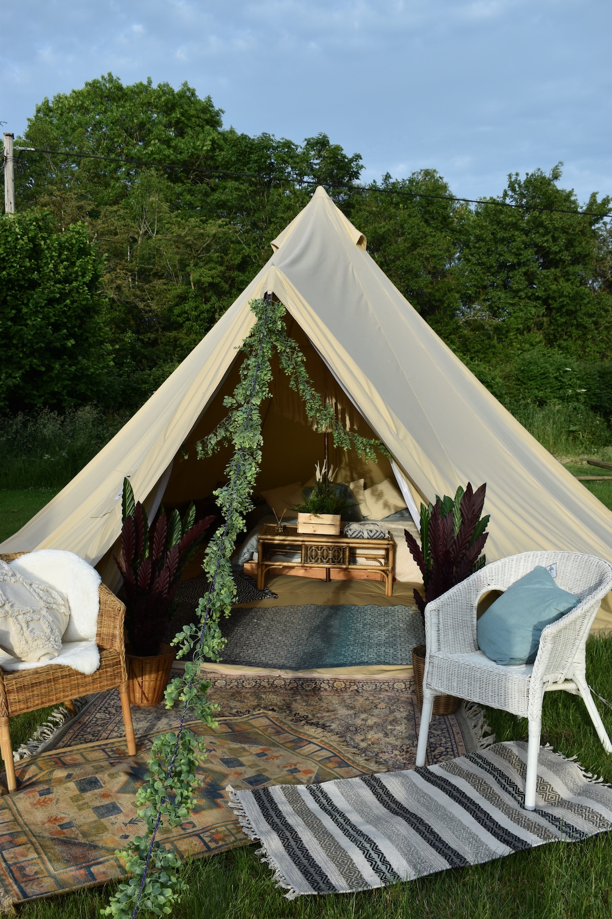 Situated in the beautiful county of Warwickshire in a quiet, peaceful and absolutely serene countryside location you'll find our two beautiful Boho Bell Tents - Paisley and Savannah. We offer off grid camping with a touch of glamour and comfort. We are in the perfect position to go and explore and do so much in the immediate and surrounding areas or you could just want to escape the craziness of everyday life, relax and enjoy the sounds of nature or catch up on reading a book.