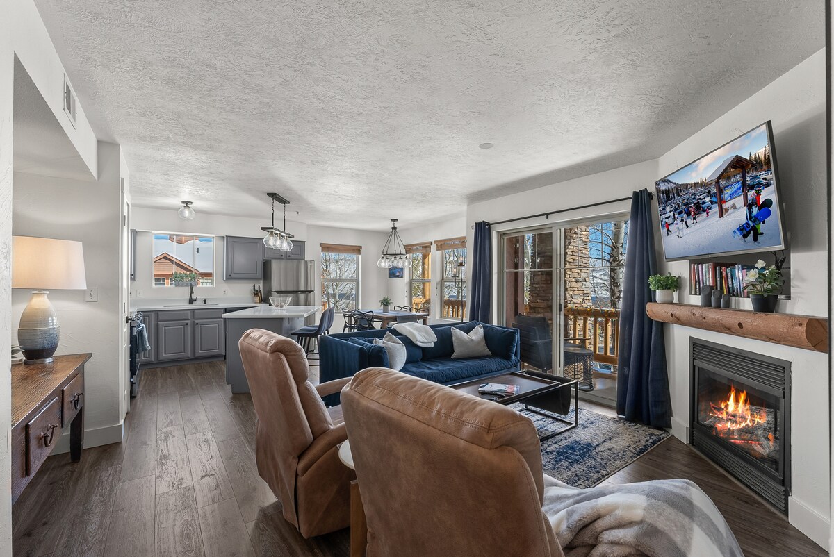 🏁Maagang pag - check in at late na pag - check out, palaging libre hangga 't maaari 🚨Modernong, na - update na family escape sa Canyons Village w/ gas fireplace ⛷️🅿️Libreng on demand na shuttle papunta sa mga ski lift. Libreng Paradahan para sa 2 kotse 🏊♂️Pribadong hot tub at BBQ deck kung saan matatanaw ang kakahuyan at meandering stream 🧑🍳Kumpletong itinalagang kusina para sa mga pagkain ng pamilya 🧺Dalawang kumpletong banyo at nakatalagang lugar ng paglalaba para maging walang kahirap - hirap ang iyong pamamalagi 🛌Silid - tulugan para sa 6: King bed, Queen bed, at open loft na may 2 full bed