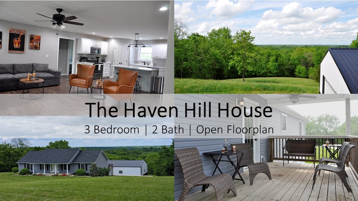 Serene ~ Peaceful ~ Private ~Modern. Centrally located in the heart of Bourbon Country. This home is an ideal setting to relax and enjoy spending time with friends or family. You will no doubt find this newly constructed home to be cozy, comfortable, and inviting! Enjoy the wonderful outdoor space in a quiet country setting with beautiful scenery and woods, comfortable seating, including a porch swing, a play area for children, and you may even see a deer or two!