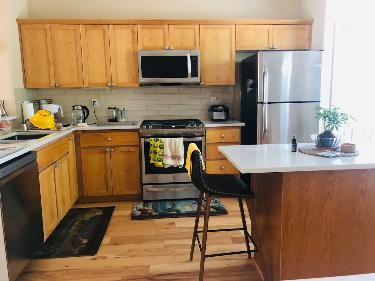 Welcome sa aming kaakit‑akit na townhouse na perpektong pinagsasama ang ginhawa at estilo sa tahimik na kapitbahayan—mainam para sa mga bumibiyahe para sa paglilibang at negosyo. May bagong inayos na kusina, king-sized na higaan sa pangunahing kuwarto, dalawang karagdagang kuwarto, at 2.5 na‑upgrade na banyo sa tuluyan. Maingat na idinisenyo ang open‑concept na sala gamit ang mga modernong kasangkapan, na nagbibigay‑daan sa pagkakaroon ng mainit at kaaya‑ayang tuluyan kung saan puwedeng magpahinga, magrelaks, o magsama‑sama pagkatapos ng isang araw ng paglilibot sa lugar.