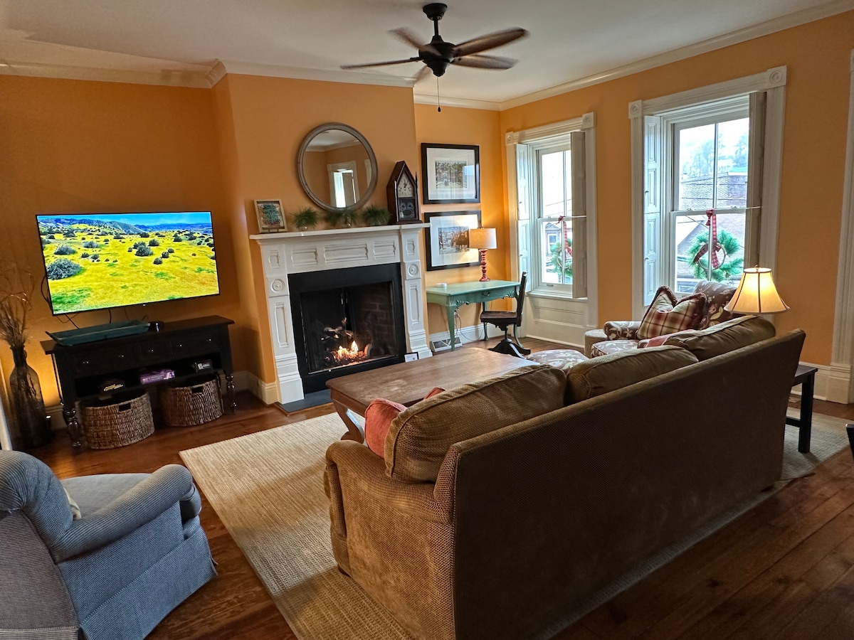 Seneca Place is a historic home. Our guests have the best of both worlds: a private full residence with attentive and available hosts (right next door). Please note that we charge by guest for requests over two, so please enter the correct number of guests to fully understand your costs. This neighborhood is very quiet with little to no traffic and the hosts are ten feet away. There is a covered side patio with an outdoor sofa as well as a connecting back patio with a fire pit.