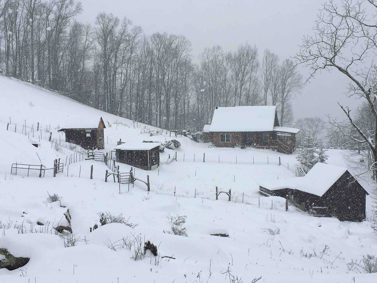 Magandang cottage kung saan matatanaw ang Pine Orchard Creek! Tangkilikin ang perpektong setting ng Todd, NC. Ang aming maliit na bahay ay bahagi ng isang 17 acre makasaysayang sakahan na itinayo noong 1881. Maglaro sa aming malaking bakuran, lumangoy sa sapa, o maglakad paakyat sa aming bundok papunta sa aming pribadong lookout! 1/2 milya mula sa New River na may patubigan, kayaking at pangingisda! 15 min papuntang Boone, 15 min papuntang West Jefferson. Perpekto para sa isang bakasyon sa katapusan ng linggo o para sa mga magulang ng ASU! May stock na mga masasarap na pagkain kabilang ang lokal na kape, mga sariwang itlog sa bukid, at lutong bahay na tinapay.