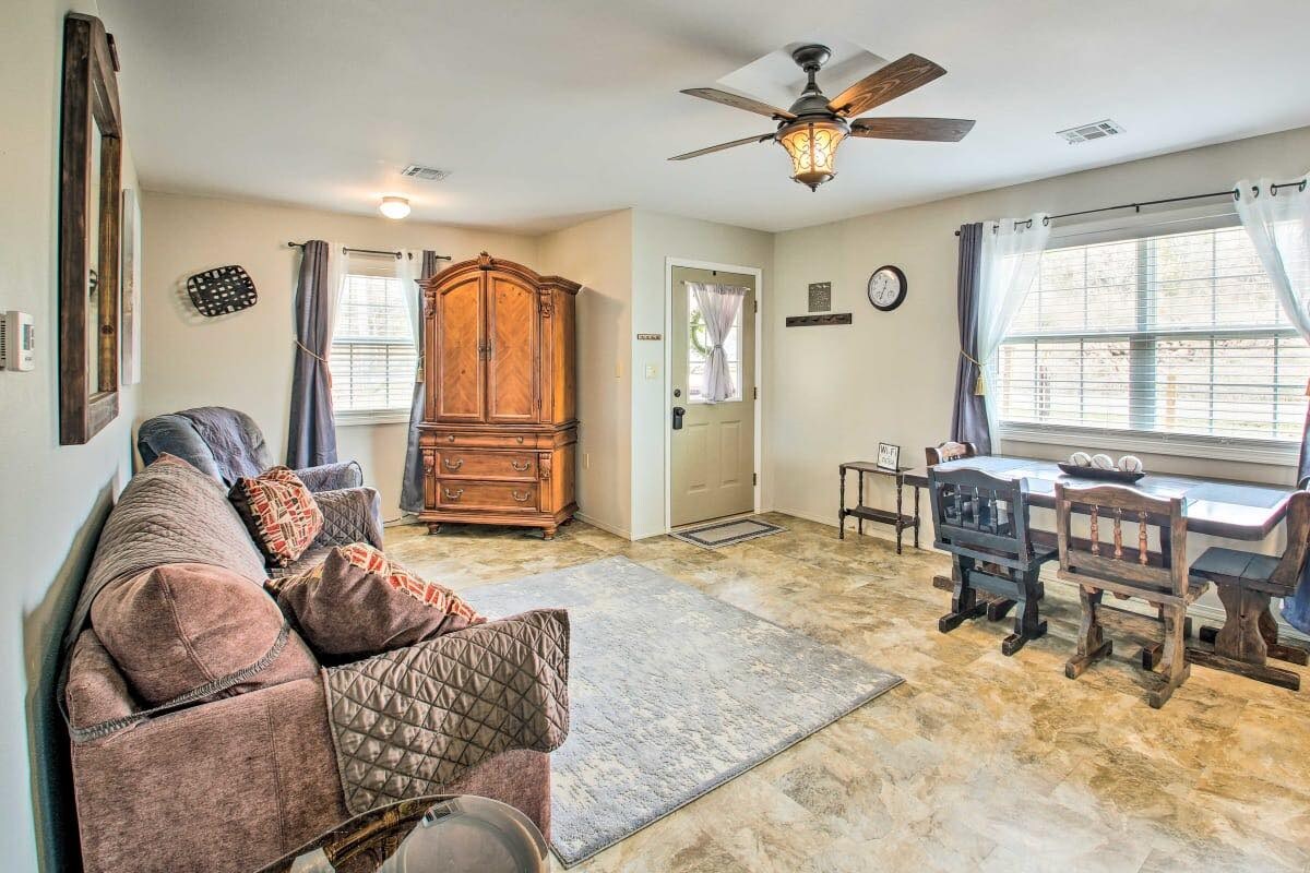 WELCOME to the Bearcat Bungalow; the perfect place to get away after a day at Blue Mountain Lake or a hike on Mt. Magazine. This cute and charming little house is only about 13 miles from Blue Mountain Lake, and 10 miles from Mt. Magazine and the Ouachita National Forest, where there are endless hours, ATV, and hiking trails. For our guests with outside pets, we offer an 8x10 pen for your furry friend! This is perfect for anyone coming to town for the J. Perry Mikles field trials.