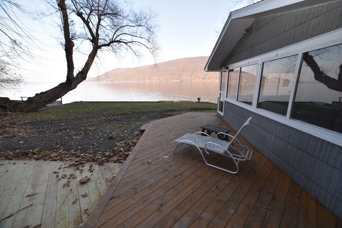 Bumalik lang at magrelaks sa pinakamagagandang lakeside cottage sa Honeoye Lake! Makakakita ka ng malaking mouth bass na lumalangoy sa tabi mismo ng baybayin. Maraming lugar para sa buong pamilya. May karagdagang dalawang silid - tulugan sa itaas na cottage na puwedeng paupahan para sa mas maraming kapamilya at kaibigan. Tingnan kung tungkol saan ang mga lawa ng daliri! Nagsama ako ng magandang fireplace para ma - enjoy mo pa ang mga buwan ng taglamig. Magrelaks sa hot tub kung saan matatanaw ang lawa.