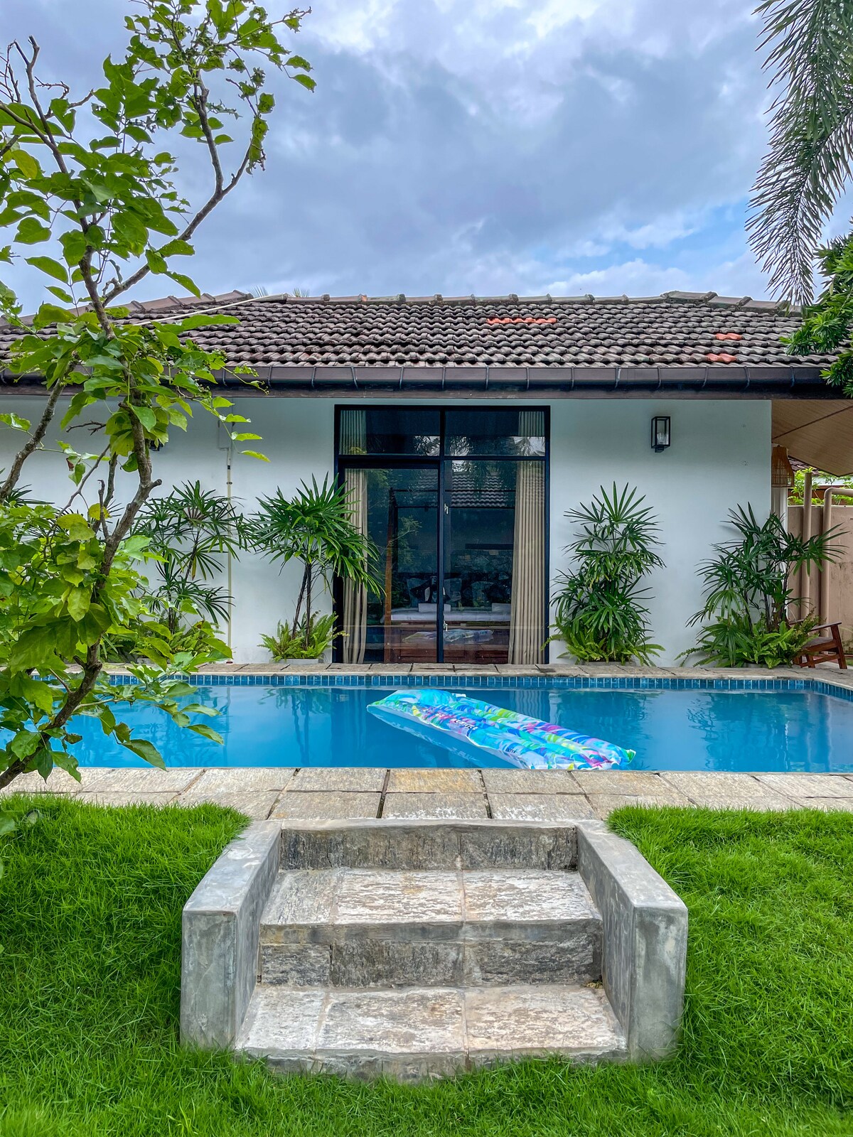 Nag - aalok ang 'White Villa' ng 650 sqm na living space sa 1 ha fenced property na may tanawin ng karagatan, access sa beach, infinity pool, fitness, spa, apat na jacuzzi at marami pang iba. Pinagsasama ng arkitektura nito ang modernong disenyo sa mga lokal na impluwensya para sa natatanging kapaligiran. Kasama sa mga amenidad ang Wi - Fi, self - service na almusal, mga naka - air condition na kuwarto, pool, gym house, sauna, steam room, 55" Sony TV, Bose sound system, dryer, washing machine at kusina na kumpleto sa kagamitan. Tumutulong si Samantha sa mga pagtatanong at pang - araw - araw na pagsakay sa TukTuk sa mga pamilihan.