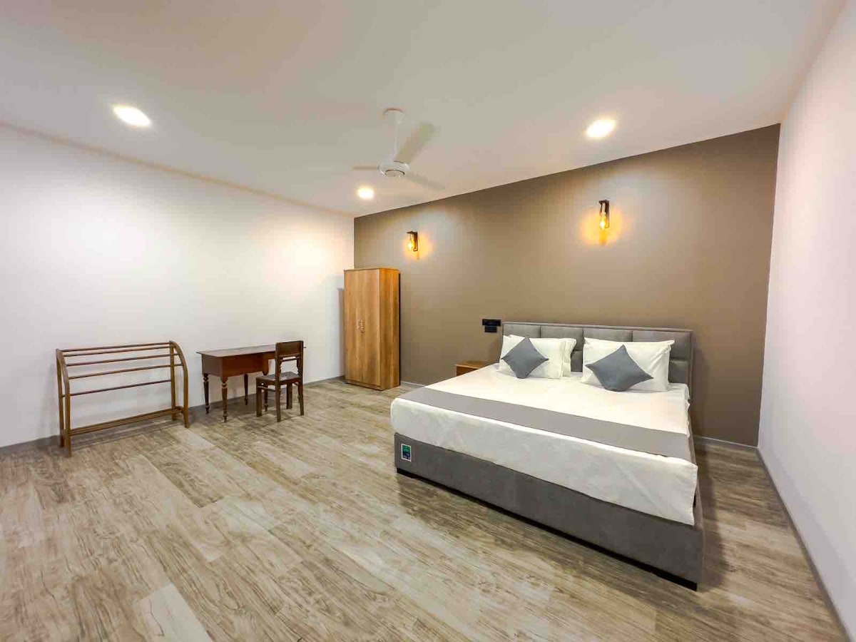 Makaranas ng kaginhawaan sa first - floor suite ng Astro Villa, na nagtatampok ng A/C na kuwarto, pribadong kusina, at banyo. Magrelaks sa balkonahe at magbabad sa tropikal na vibes, malapit lang sa mga hotspot ng Weligama tulad ng Marriot, W15, at Kurumba Bay. Perpekto para sa mga mag - asawa o solong biyahero, nag - aalok ang naka - istilong tuluyan na ito ng libreng Wi - Fi, paradahan, at komportableng kapaligiran. Narito ka man para sa surfing, kainan, o simpleng pagrerelaks, tinitiyak ng pribadong bakasyunang ito na walang aberya at di - malilimutang pamamalagi.
