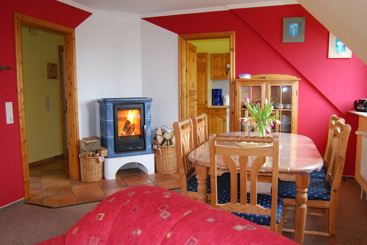 Romantic attic apartment para sa mga mag - asawa, walang kapareha at workation sa Dithmarschen/SH! Ang bukas na konsepto ng pamumuhay at banyo ay nag - aalok ng maraming pagkakataon para sa togetherness at espasyo upang gumana. Matatagpuan ang toilet sa hiwalay na kuwarto. Mula sa sala, walang harang ang mga bisita sa shower area. Ang mga kagamitan ay buong pagmamahal naming ginawa. Ang isang halo ng mga lumang kasangkapan, sariling mga likha, at modernong kasangkapan ay nagbibigay sa apartment ng isang napaka - espesyal na kagandahan. Tahimik na lokasyon ng nayon!