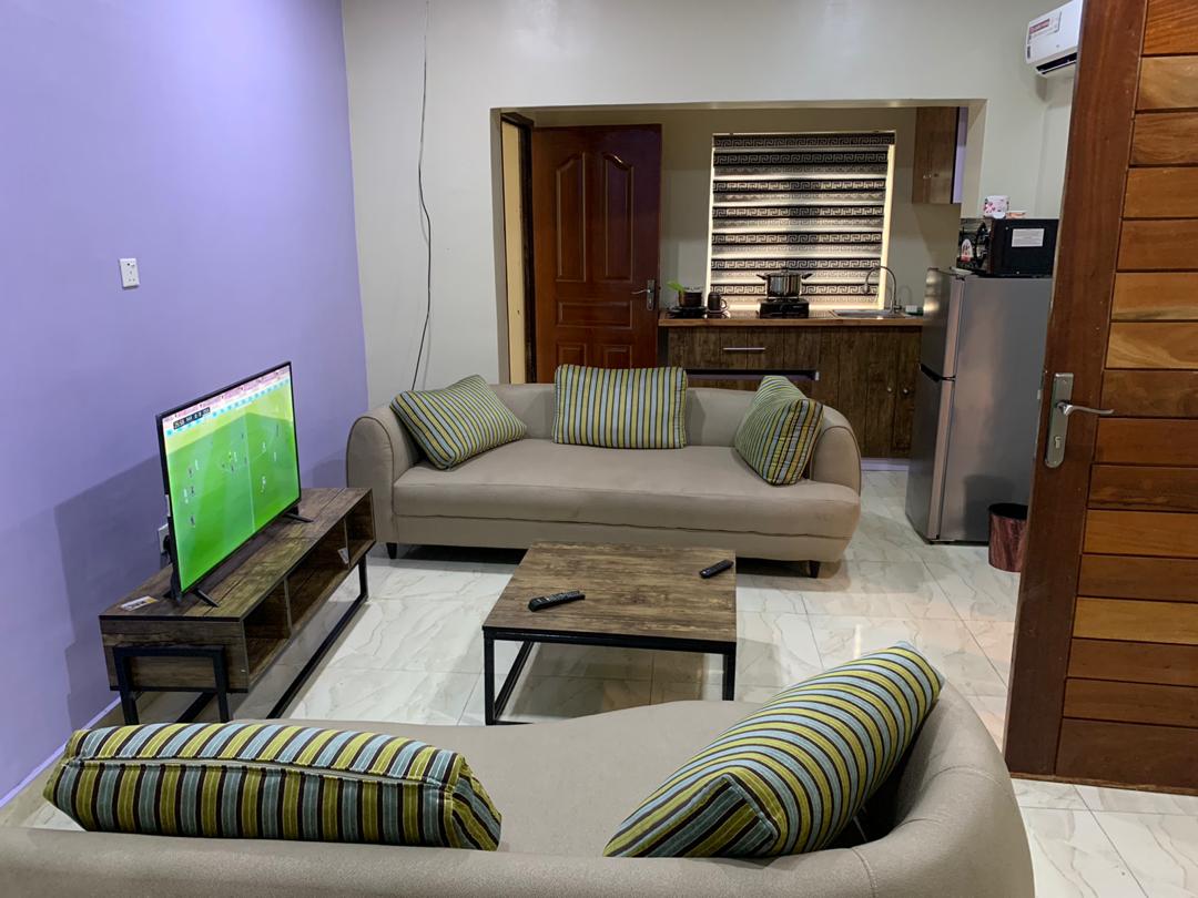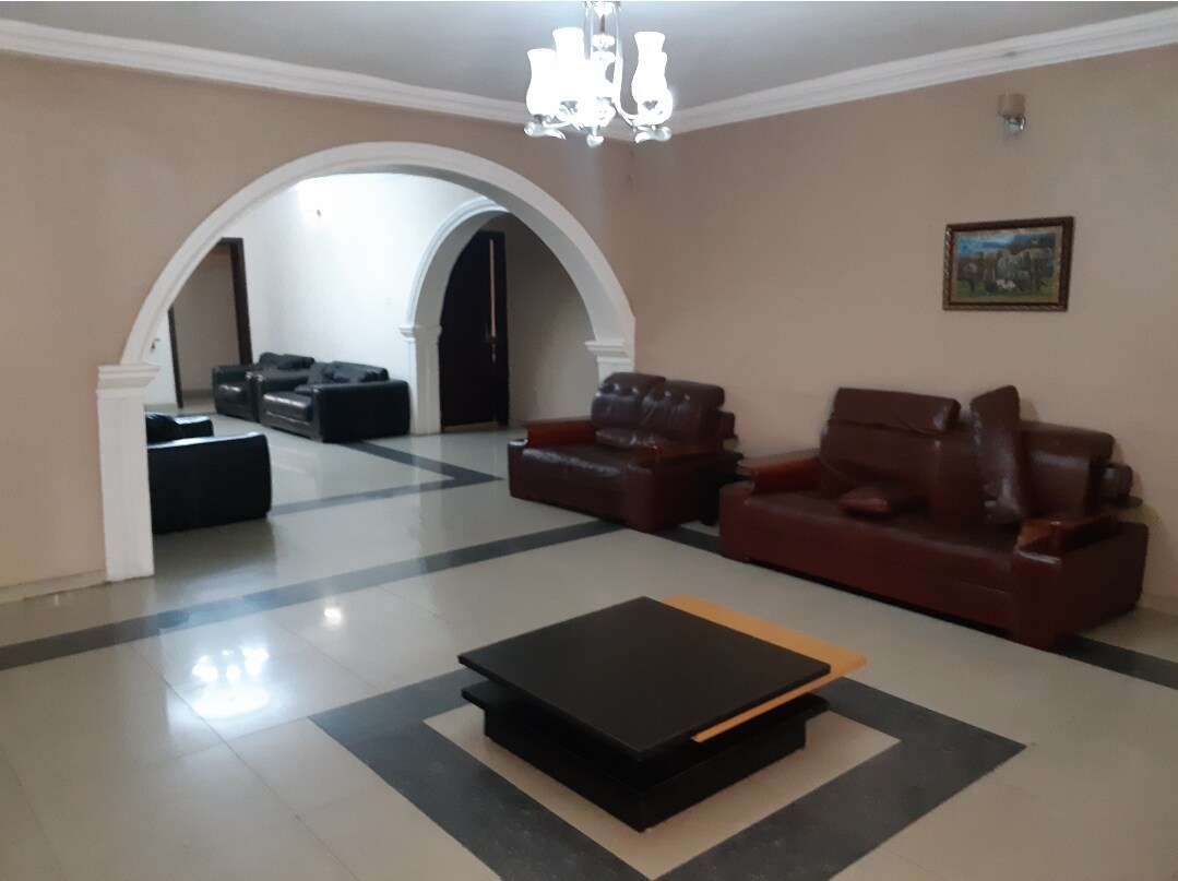 Ang katangi - tangi at marangyang serviced apartment na ito ay maingat na nakatago mula sa lungsod; ngunit naa - access sa sentro ng lungsod. Matatagpuan ito sa gitna na may lahat ng eksklusibong amenidad at sistema ng supply ng kuryente, tulad ng naka - install na inverter at generator na hindi kailanman nabigo sa pag - power ng cooling unit 12 oras kada araw. nag - aalok kami ng mga serbisyo sa paglalaba nang may bayad pero libre ang pamamalantsa. sampung minuto ang layo nito mula sa mga spot tulad ng Novare mall, kung saan makikita mo ang Genesis Cinema, Shoprite, spa, barber shop,restawran,atbp.