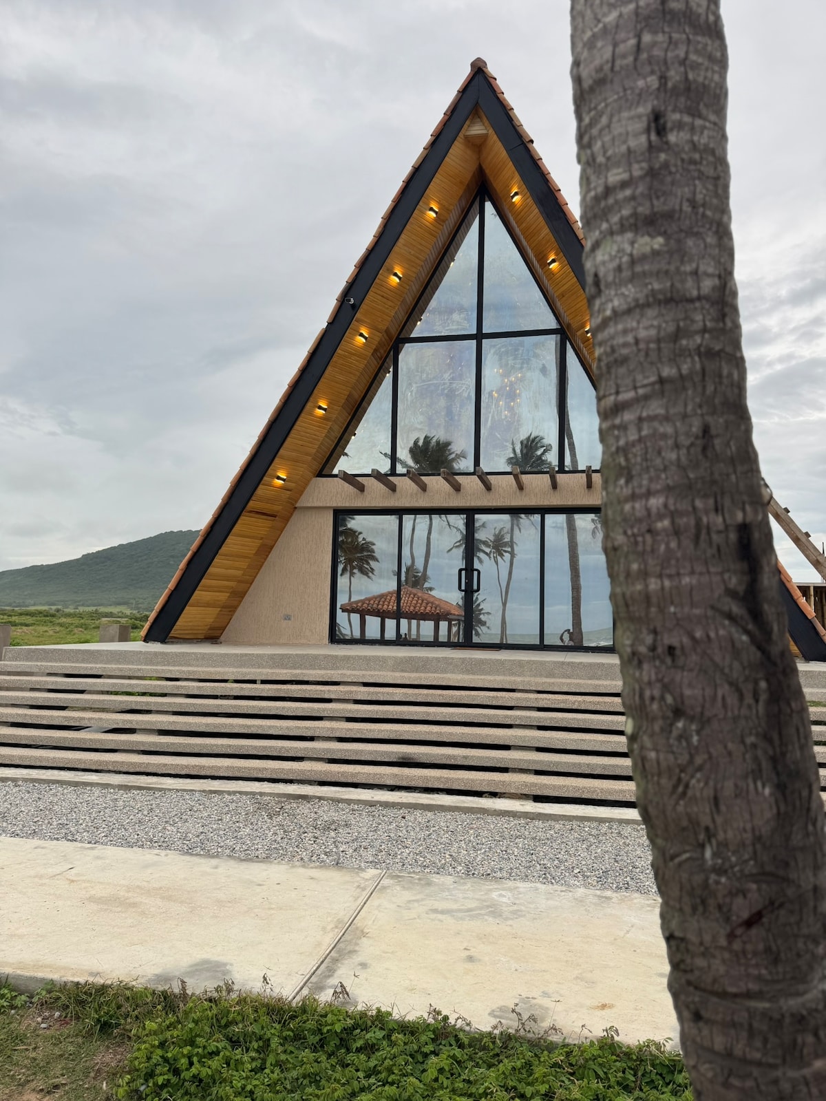 A-Frame Paradise | Beachfront Cabin Between Mountain & Sea Escape to A-Frame Paradise—a newly built coastal getaway nestled between the majestic Manko Mountain and the breathtaking Atlantic Ocean, with the serene Muni Lagoon just steps away. Located off the Accra-Cape Coast road, this peaceful retreat is about 2.5 hours from Kotoka International Airport, making it the perfect escape from the city's hustle.