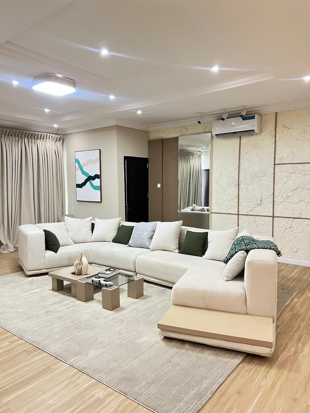 Enjoy a stylish experience at this centrally-located place. The apartment is situated on the 6th floor at Airport Residential, an affluent residential community right next to the infamous Kozo fine dining restaurant and Nyaho Medical Centre. It is surrounded by local bars, clubs and restaurants for those looking for enjoyment with their friends and family. The apartment is a 6 minutes drive from the airport and a 7 minute drive from Accra mall. The property is gated with 24/7 security and CCTV.