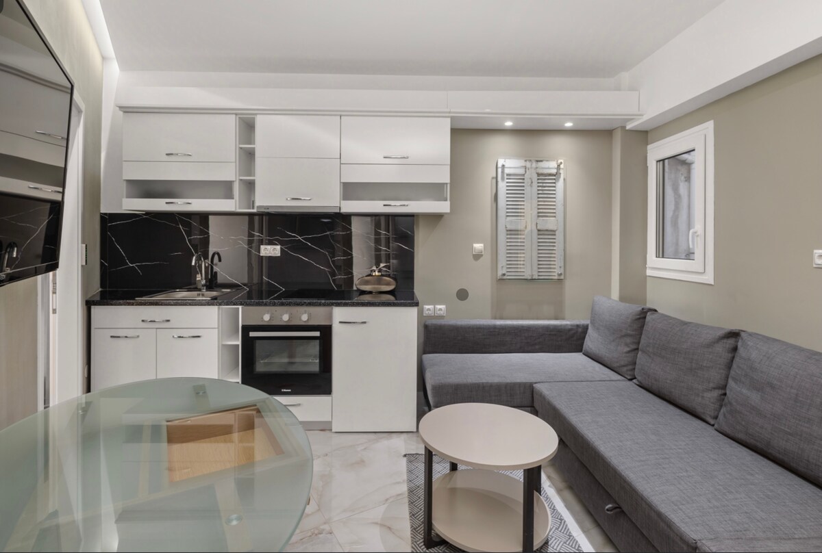 Mararangyang, kamakailang na - renovate na apartment, na perpekto para sa pagho - host ng 2 o 4 na bisita. Nagtatampok ang kuwarto ng queen bed na may deluxe mattress at en - suite na WC/shower. Ang sofa sa sala ay nagiging queen size na higaan at ang mga bisitang natutulog doon ay may sariling 2nd WC/shower. Kumpletong kusina na may mga bagong kasangkapan at marmol na bangko at lababo na dating bahagi ng bahay mula pa noong 1930s. Ginawa mula sa Pentelikon marmol, ang parehong uri ng marmol sa Acropolis na bihirang mahanap ngayon.