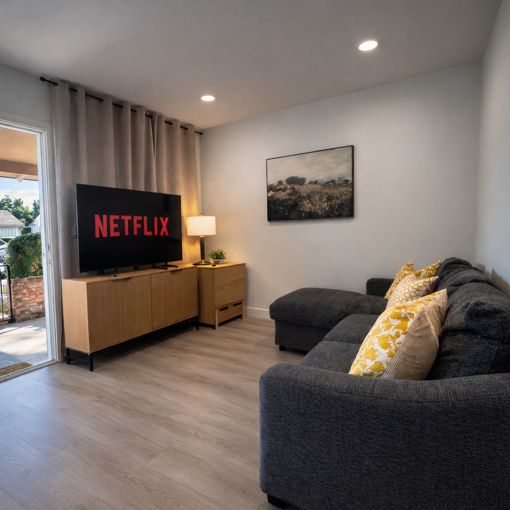 Maingat na idinisenyo ang malinis at pribadong tuluyan na ito na may 1 kuwarto para maging komportable at maginhawa: • 🍳 Malaking kusina na may lahat ng pangunahing kailangan • 🛏 Maaliwalas na kuwarto na may de-kalidad na linen • 💻 Mabilis na WiFi para sa trabaho o streaming • 🛁 Pribadong jacuzzi hot tub (para sa 1 tao) sa loob ng unit para sa lubos na pagpapahinga • 🌟 Nililinis at sinasanitize ng propesyonal bago ang bawat pamamalagi