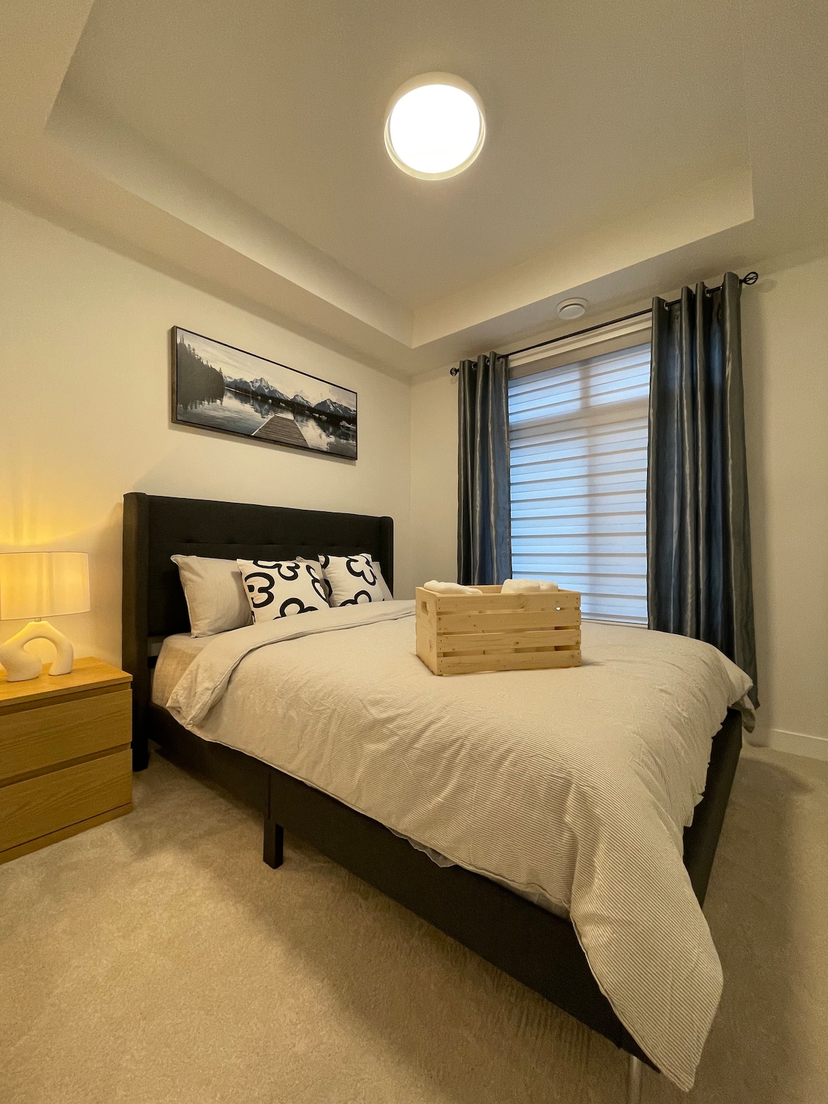 Tandaang para sa mga nasa hustong gulang lang ang unit na ito. Bagong tapos at propesyonal na inayos na 2-bedroom luxury condo sa Windermere. Tumatanggap ng hanggang 7 bisita. May heating na underground parking; ilang minuto lang mula sa The Currents shopping-entertainment complex. ★ Nililinis at pinapangasiwaan ng propesyonal ★ May heating na underground na paradahan ★ Ilang minuto ang layo sa mga pamilihan, restawran, at libangan ★ Madaling makakapunta sa airport at mga arterial road. ★ Kumpletong kusina ★ Malaking opisina na nagbibigay ng karagdagang flexibility