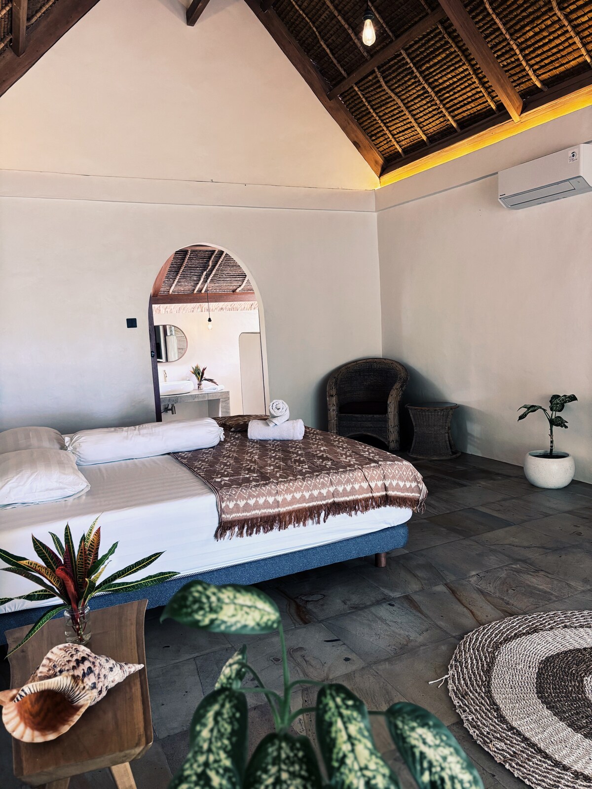 Zara Bungalow is a charming one-bedroom villa with a fully equipped kitchen, private terrace, and unlimited Starlink WiFi. Enjoy an outdoor shower and a hot-water ensuite (indoor/outdoor). The spacious bedroom blends modern and traditional architecture, with air conditioning for comfort. Located directly on the beach, Zara Bungalow sits in front of the world-class surf spot, Lance’s Right HT's – perfect for a relaxing stay or surf getaway.