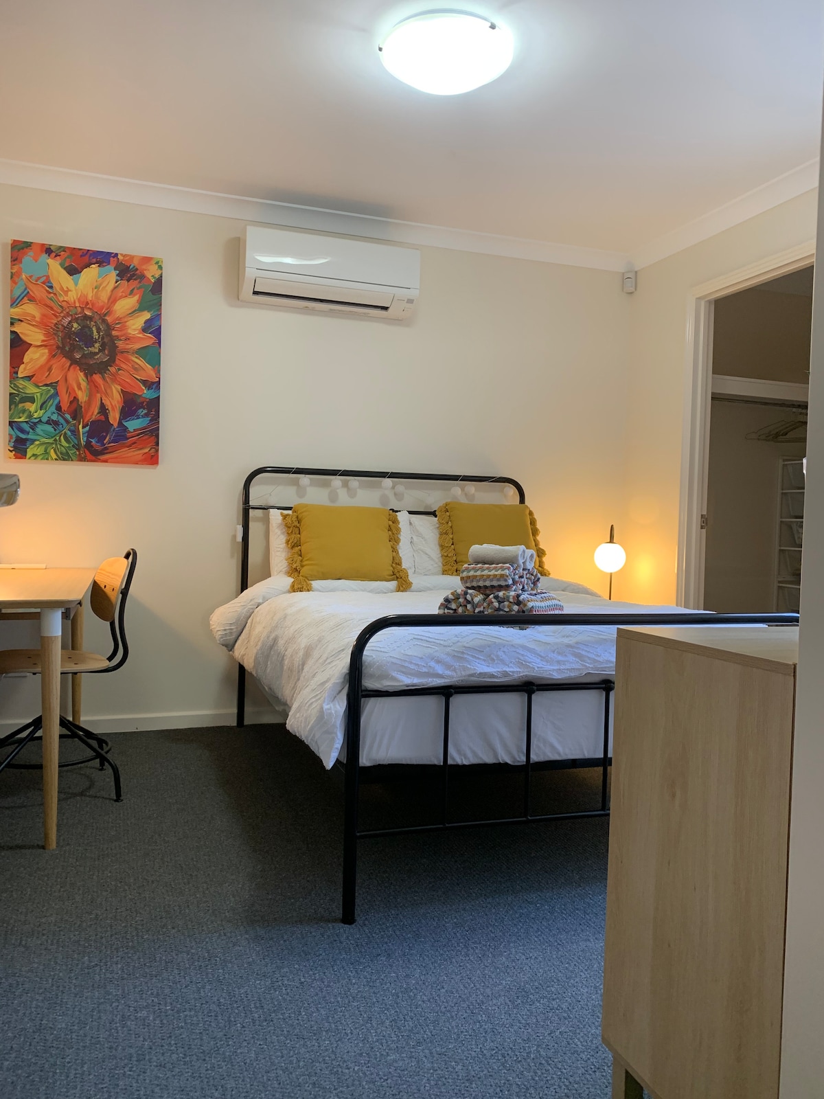 Mainit at nakakaengganyo ang apartment ko. Marangyang may magandang banyo na may claw foot bath ang kuwarto. Kumpletong kagamitan sa Kusina, labahan at malabay na bakuran, bbq at alfresco na kusina. Kasama sa family room ang dining area, lounge, at malaking screen na Netflix TV. Habang ang apartment ay nasa ilalim ng parehong bubong ng tatlong front room na aming inuupahan, ito ay ganap na pribado at pinaghihiwalay ng isang lockable door, na tinitiyak ang iyong sariling lugar at kaginhawaan. Ikaw ang bahala sa buong apartment sa panahon ng pamamalagi mo