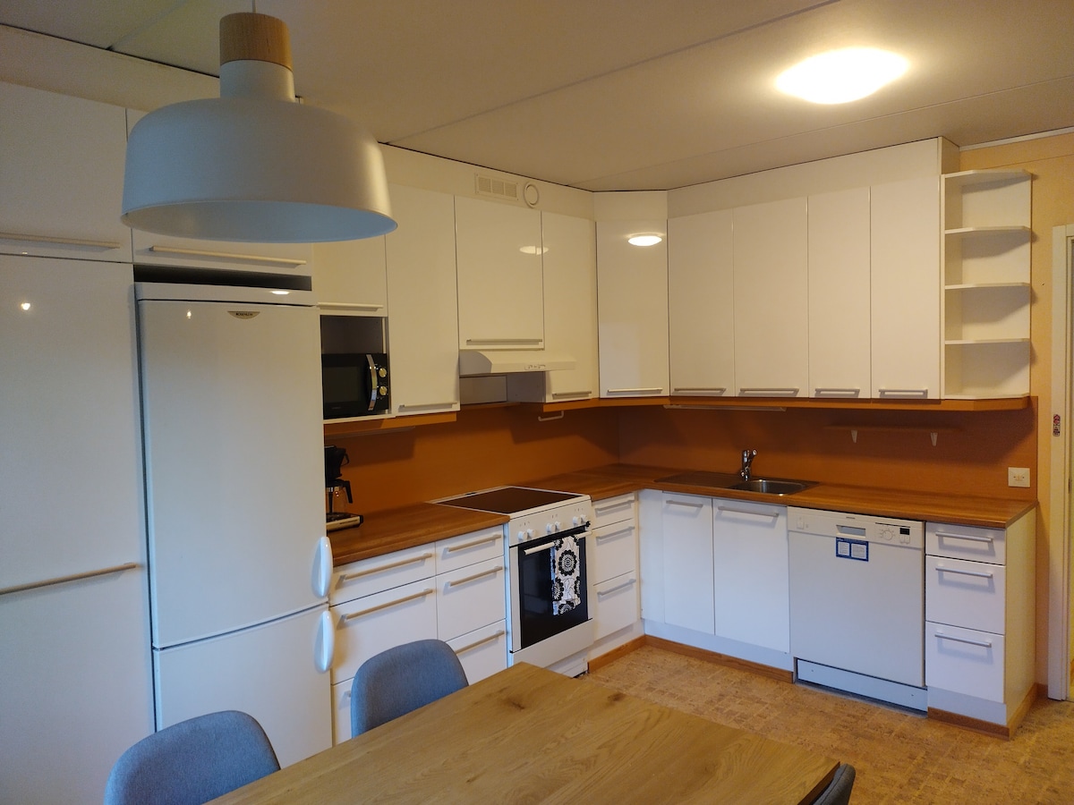 Maluwag na apartment sa isang courtyard building sa sentro ng Vör, 35 km mula sa Vaasa. Magmaneho ng 30 min sa PowerPark. 1,2km sa ski resort (ski track, downhill skiing, roller ski track, golf course, frisbee golf course). 2km sa Campus Norrvalla (kabilang ang OCR track, MTB track, hiking trail, minigolf). 1,5km sa grocery store. Ang apartment ay may washing machine, dishwasher, 2 toilet+shower. Libreng paradahan + heating plug ng makina. Posibilidad na mag - relax ng mga skis sa isang mainit - init na kuwarto. Non - smoking apartment, walang pinapahintulutang hayop. 5 higaan.