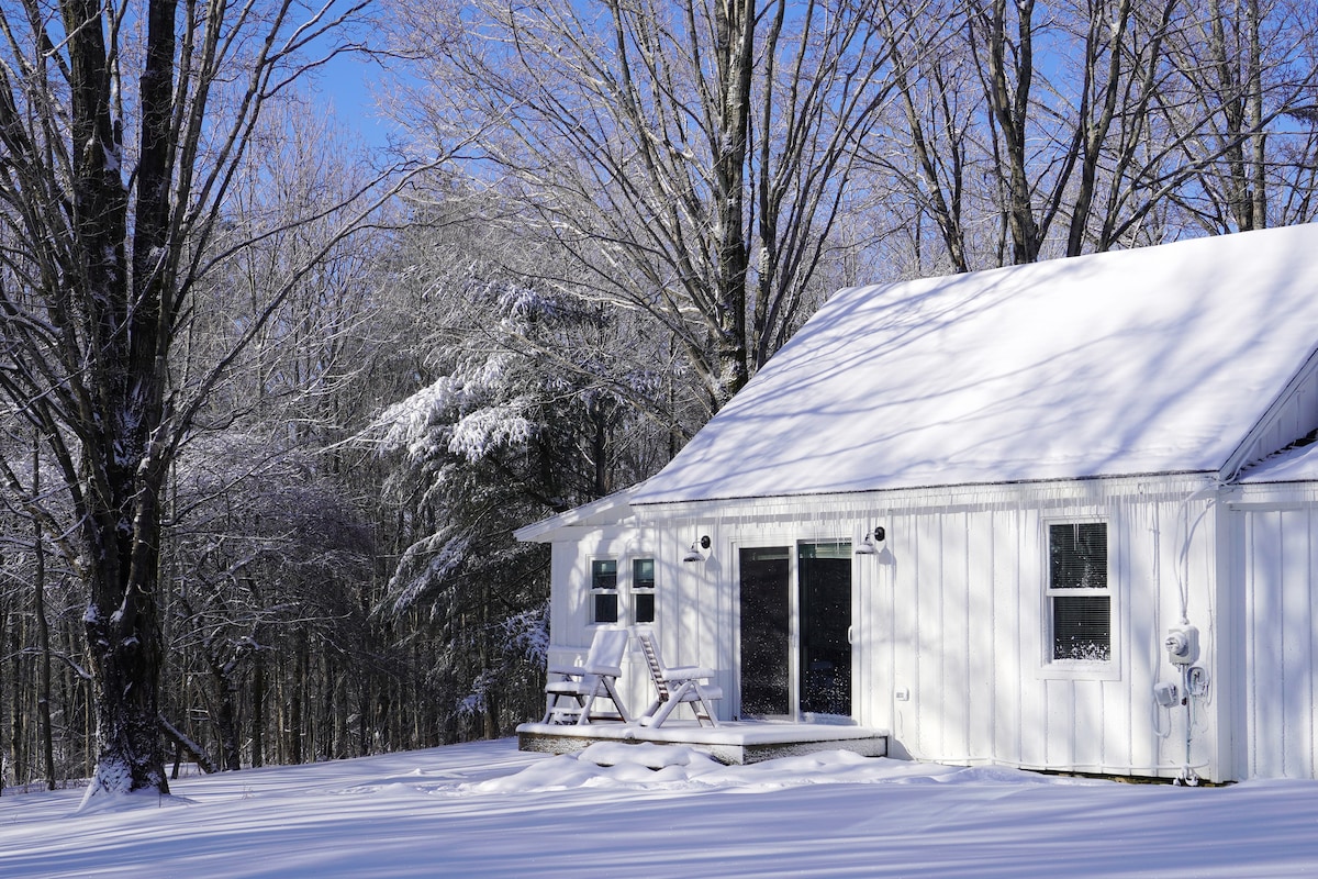 Kamakailang itinayo 500sq ft passive solar cabin, 10 minuto sa Stratton Mtn., 20 minuto sa Mt. Snow at Dover para sa skiing, shopping, pagkain, o beer sa Snow Republic. Tahimik na kalsada pero napaka - accessible. Perpektong lugar para sa pagha - hike, pagbibisikleta, pagrerelaks sa kahabaan ng Ball Mountain Brook o pag - kayak sa Grout Pond o % {bold Meadows. Tangkilikin ang campfire sa bakuran sa gilid/dating parang buriko corral o magrelaks sa maluwag na screen sa porch. 30 minuto mula sa pana - panahong merkado ng mga magsasaka at mula sa Manchester para sa mga saksakan.