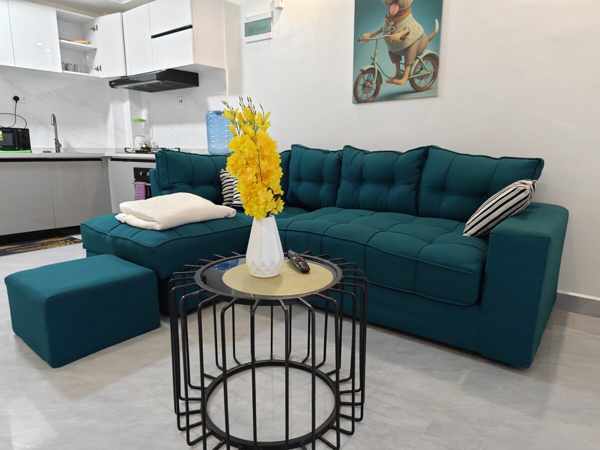 Welcome sa maistilong urban getaway mo sa Kilimani. Pinagsasama ng modernong studio na ito ang ginhawa at kaginhawaan, kaya mainam ito para sa mga business traveler, magkarelasyon, o bisitang mag-isa na bumibisita sa Nairobi. Mag-enjoy sa komportableng queen-size na higaan, mga eleganteng kasangkapan, kumpletong kitchenette, at pribadong balkonaheng may tanawin ng lungsod. May magagamit ang mga bisita na gym, ligtas na paradahan, at high-speed Wi-Fi. Ilang minuto lang ito mula sa mga mall, café, restawran, at libangan kaya perpektong base ito para sa trabaho o pagpapahinga sa lungsod