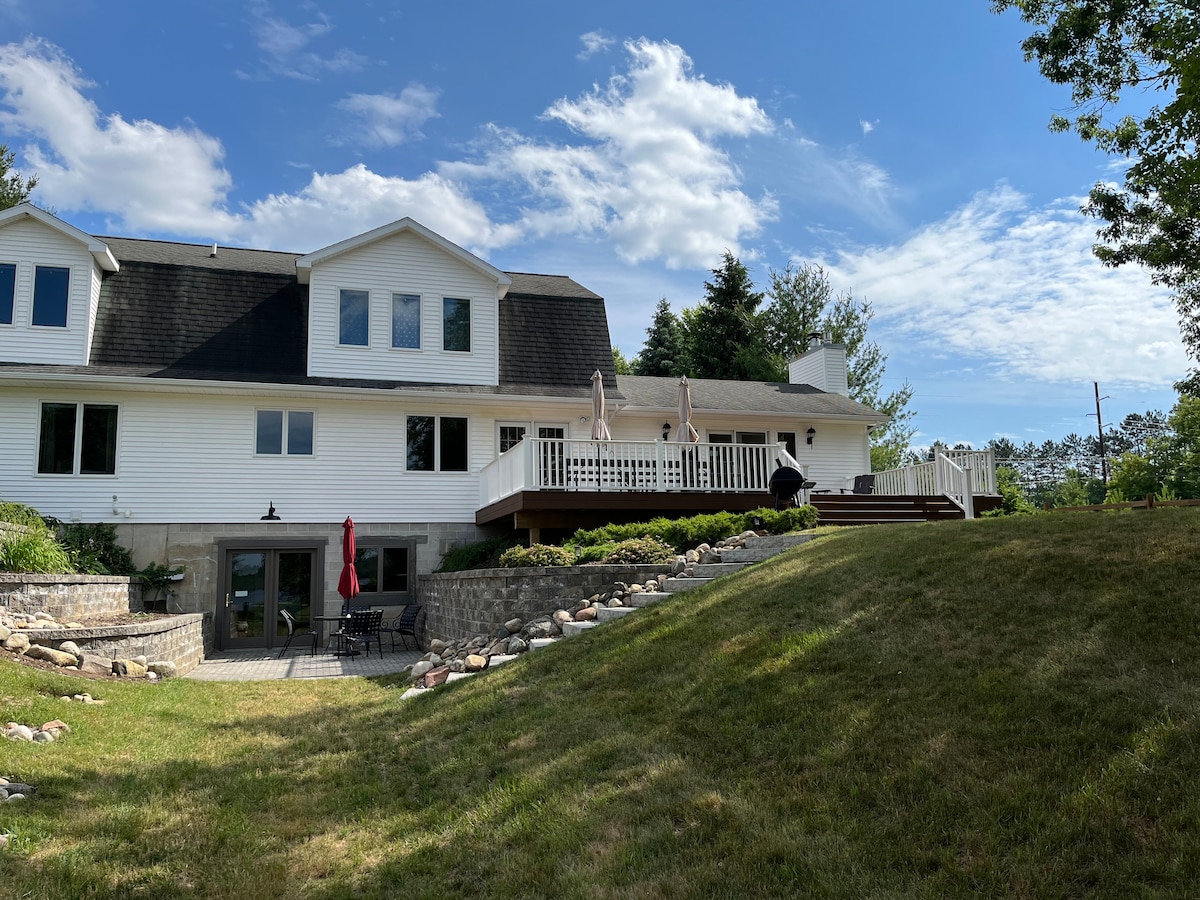 Ang Smiling Moose Lodge ay perpekto para sa susunod mong bakasyon ng pamilya. Ang bahay ay natutulog sa 16 na kama at maraming espasyo para sa buong pamilya at pagkatapos ay ang ilan. Matatagpuan sa gitna ng Traverse City, Crystal Mountain Ski and Golf Resort, Lungsod ng Cadillac, at Caberfae Peaks ski resort. Ang ORV trail para sa snowmobiling ay nagsisimula sa dulo ng driveway at ang Manistee River ay 3 minuto ang layo kung saan maaari mong tamasahin ang lahat ng kalikasan sa pamamagitan ng canoe, kayak (4 na ibinigay) o bangka.