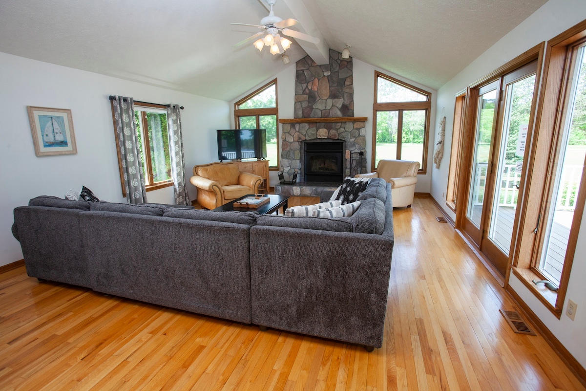 Ang aming tahanan sa tabi ng lawa ay ang perpektong lugar para sa iyong bakasyon sa Northern Michigan! Nag - aalok ang aming tuluyan na may kumpletong stock at maluwang na tuluyan ng sauna at hot tub para makapagpahinga ka at makapagpahinga! Magandang paglangoy para sa buong pamilya. Madaling mapupuntahan ang baybayin ng lawa, Sleeping Bear Dunes, m22, maraming ski resort, 8 golf course, at maraming lawa at ilog. Mga Feature: • Malawak na deck kung saan matatanaw ang lawa • Sauna • Panlabas na Hot tub para sa 6 • EV Charger • Generac Generator • Fire pit at upuan sa labas • Mga kayak at laro sa damuhan