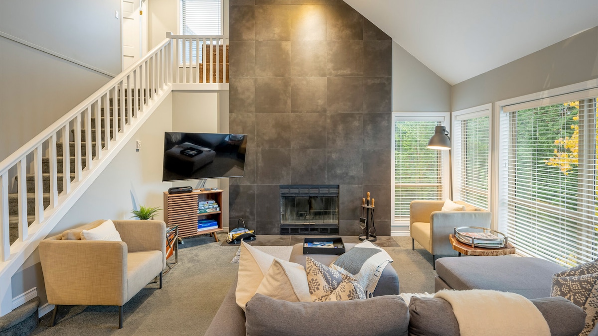 Maligayang pagdating sa iyong Whistler get away! Masiyahan sa pribadong hot - tub, mga nakamamanghang tanawin ng bundok, at komportableng gas fireplace. Maluwag, komportable at mainit - init na sahig. Matatagpuan ang lugar na ito sa lugar ng North Village, na may maigsing distansya mula sa mga Mountain lift, Merkado, Restawran, Tindahan, Olympic Villa, Parke, Bus Stop, Museo at Ospital. Nag - aalok ang aming tuluyan ng nakakarelaks/kumpletong base para sa mga mag - asawa, fam. o maliliit na grupo. Madaling pag - check in sa sarili. Libreng paradahan/internet. Ang garahe ay perpekto/ligtas na imbakan para sa mga bisikleta.