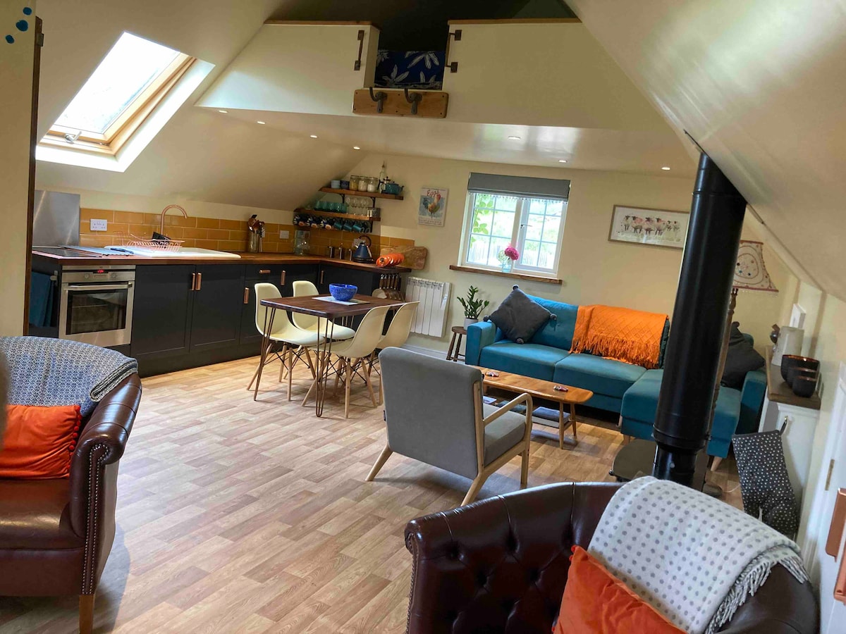 Isang kapansin - pansin at na - convert na cart shed na may vault na kisame, na hiwalay sa property ng mga host. Matatagpuan sa isang mahabang driveway sa loob ng 10 minutong lakad mula sa maunlad na nayon ng Test Valley na ito. Ang istasyon ng nayon ay nasa loob ng isang oras ng London Waterloo. Kabilang sa mga lokal na atraksyon ang Bombay Sapphire Distillery Visitor Center (20% diskwento na magagamit para sa aming mga bisita), Highclere Castle, ang lokasyon para sa Downton Abbey, isang bilang ng mga lokal na gastro pub at maraming paglalakad sa bansa. Isang gym na kumpleto sa kagamitan. Magtanong para sa mga karagdagang detalye.
